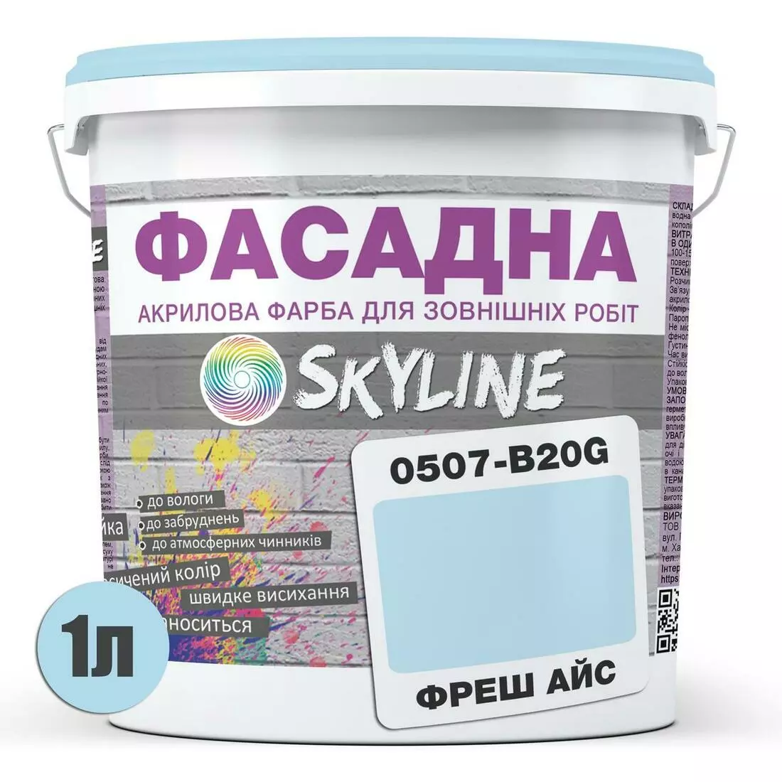 Краска Акрил-латексная Фасадная Skyline 0507-B20G Фреш Айс 1л