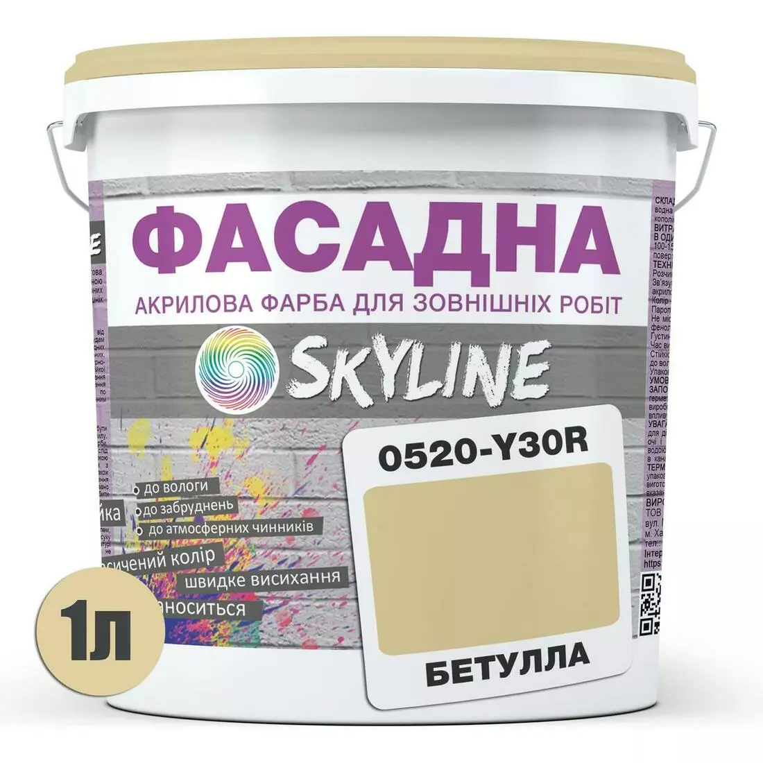 Краска Акрил-латексная Фасадная Skyline 0520-Y30R Бетулла 1л