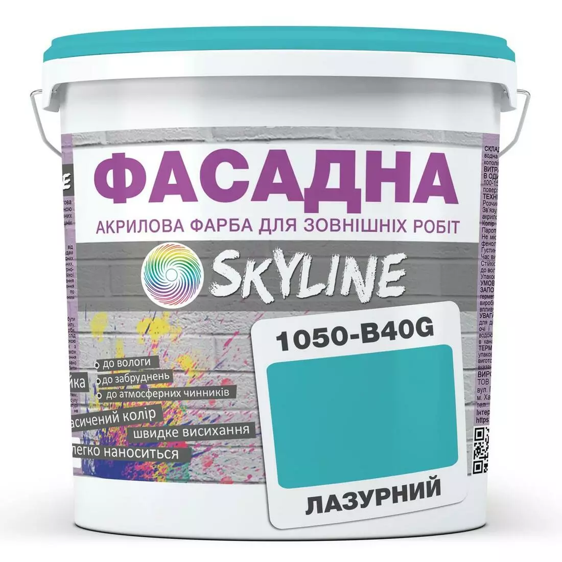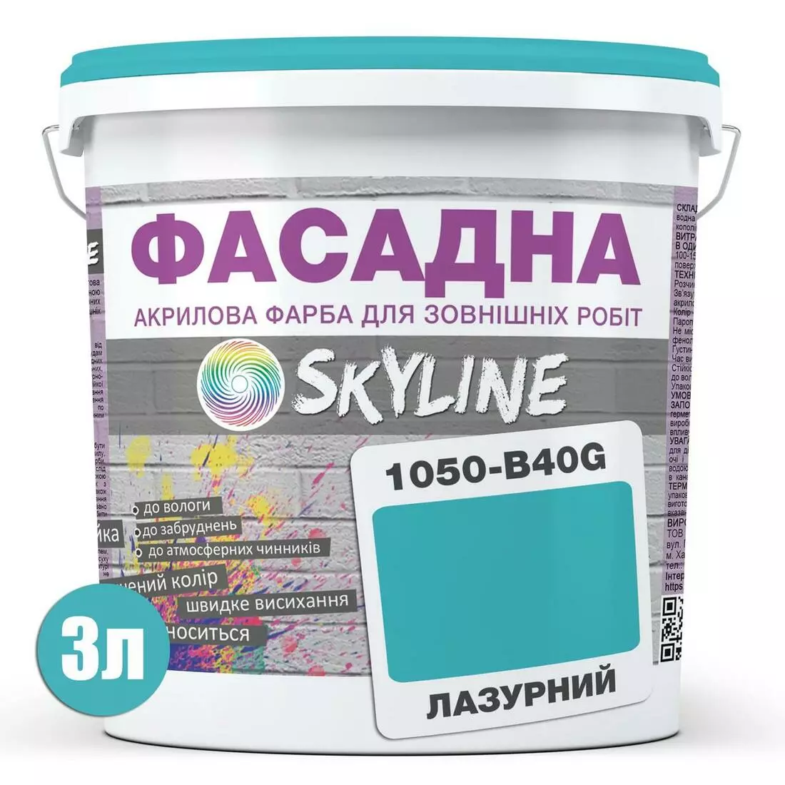 Краска Акрил-латексная Фасадная Skyline 1050-B40G Лазурный 3л
