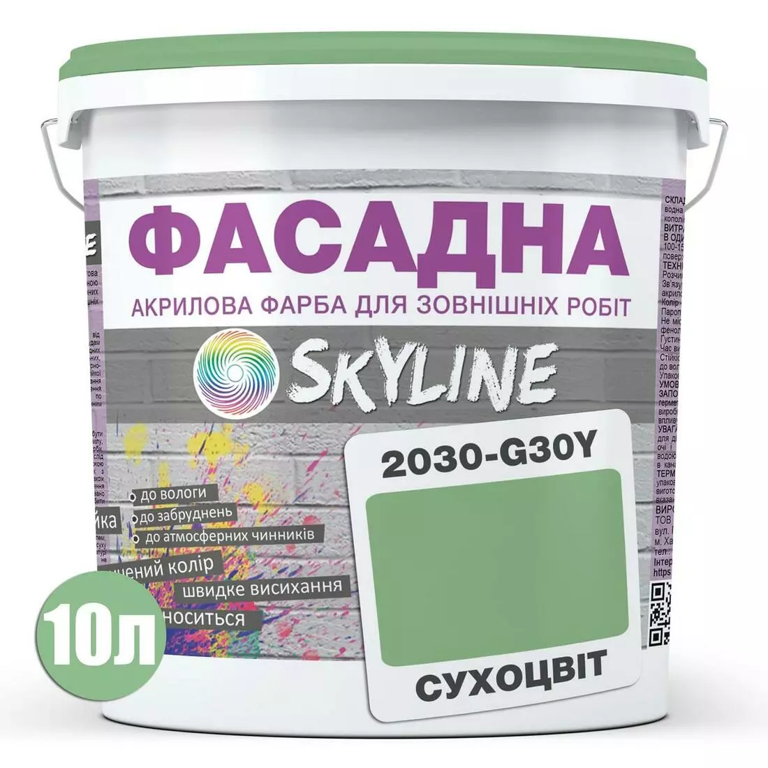 Насыщенная, атмосферостойкая матовая фасадная краска Skyline (Скайлайн). Выпускается в уже готовых заколерованных тонах. Огромная палитра включает в себя как нежные, пастельные оттенки, так и яркие, сочные и смелые цвета. Не имеет запаха. Экологически безопасный продукт. Для колорирования используются концентрированные пигменты высокого качества, которые сохраняют первозданный цвет краски и не выгорают на солнце более 10 лет.