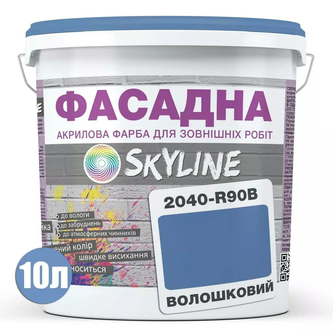 Краска Акрил-латексная Фасадная Skyline 2040-R90B Васильковый 10л