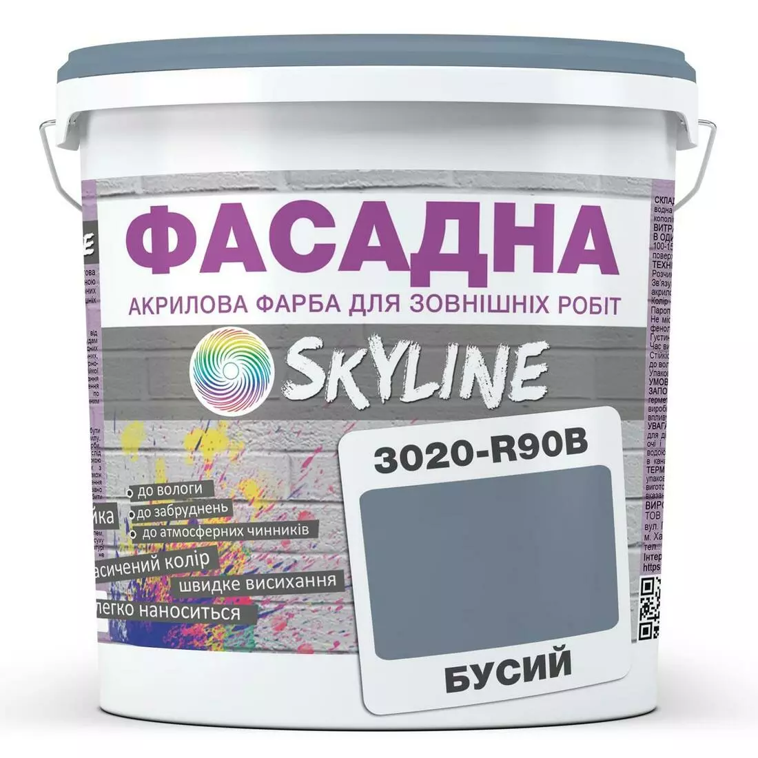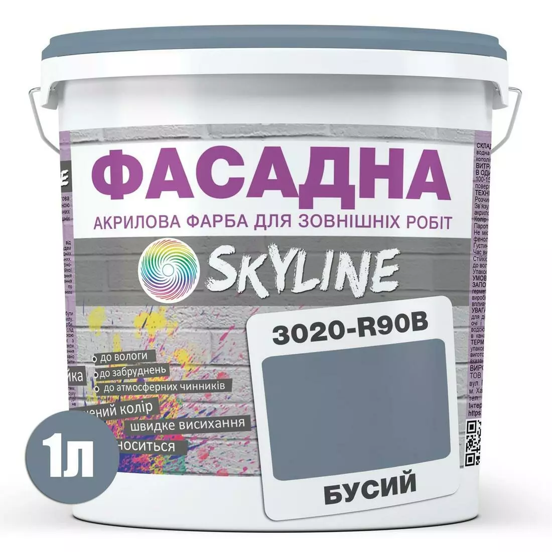 Краска Акрил-латексная Фасадная Skyline 3020-R90B Бусый 1л