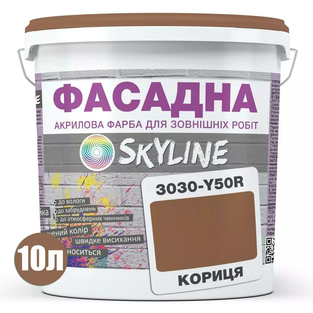 Краска Акрил-латексная Фасадная Skyline 3030-Y50R Корица 10л