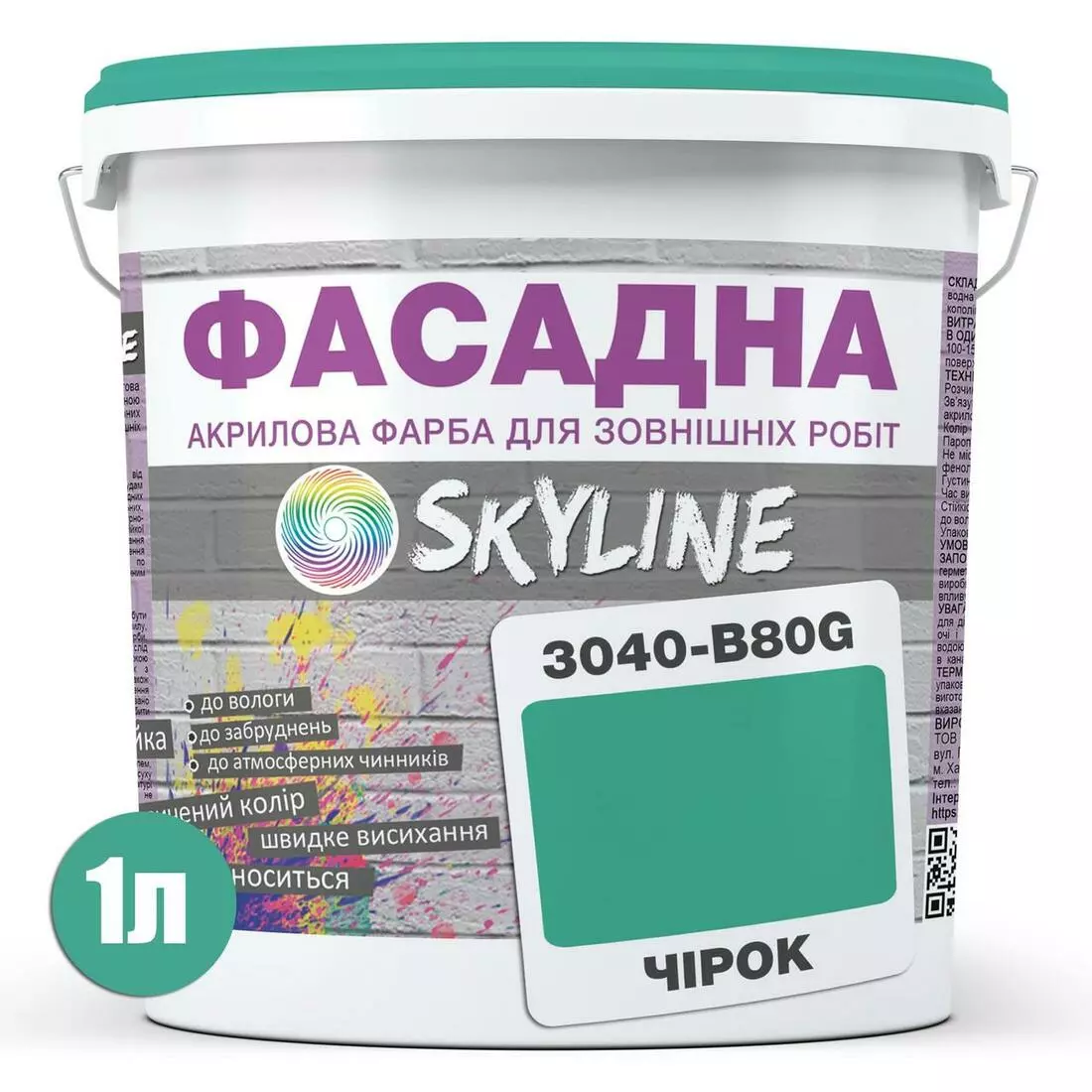 Краска Акрил-латексная Фасадная Skyline 3040-B80G Чирок 1л