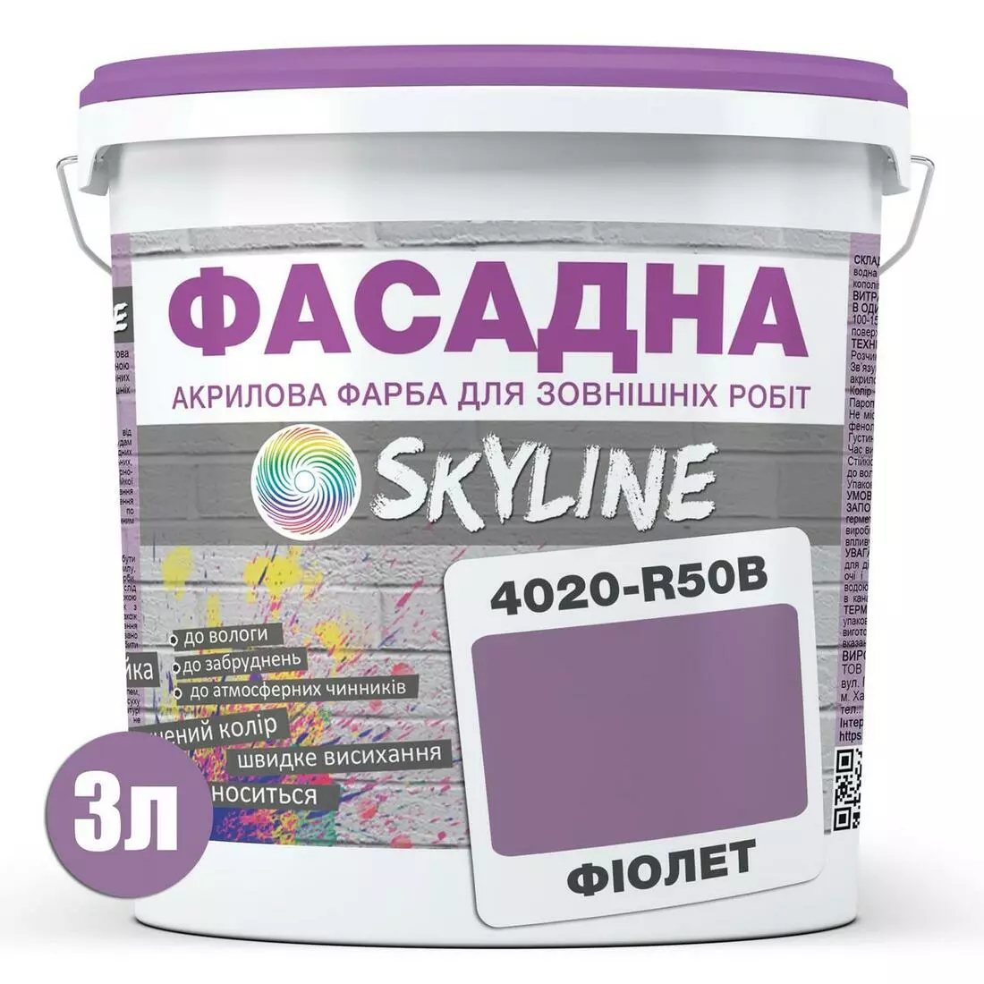 Краска Акрил-латексная Фасадная Skyline 4020-R50B Фиолет 3л