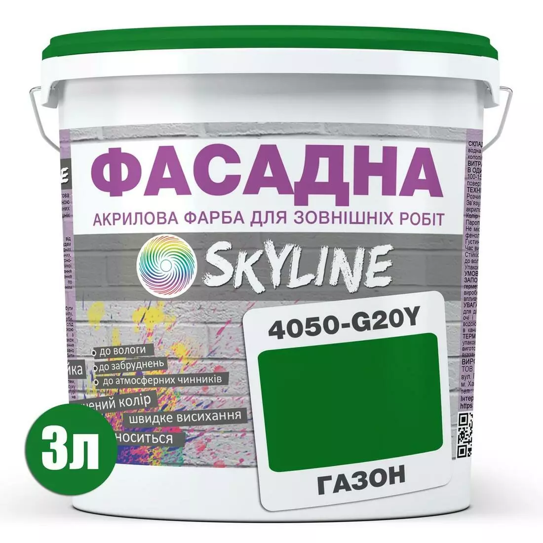 Краска Акрил-латексная Фасадная Skyline 4050-G20Y (C) Газон 3л