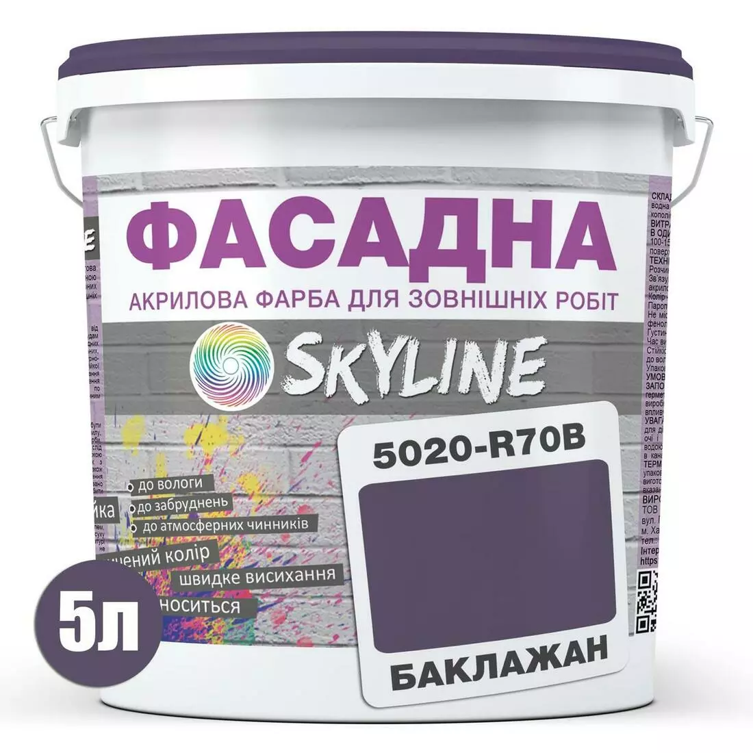 Краска Акрил-латексная Фасадная Skyline 5020-R70B Баклажан 5л