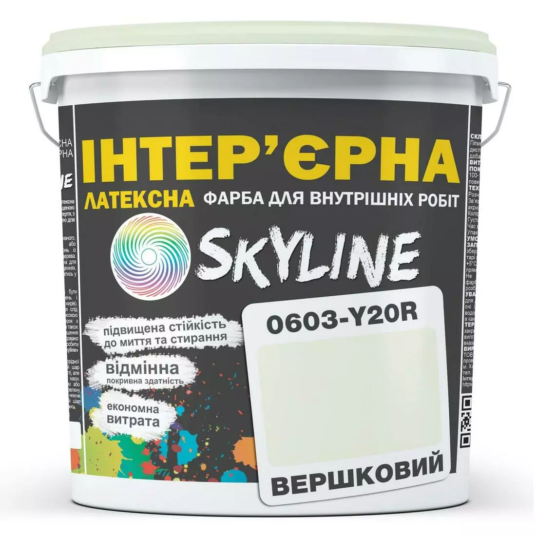 Насыщенная, износостойкая матовая латексная интерьерная краска Skyline (Скайлайн). Выпускается в уже готовых заколерованных тонах. Огромная палитра включает в себя как нежные, пастельные оттенки, так и яркие, сочные и смелые цвета. Не имеет запаха. Экологически безопасный продукт.