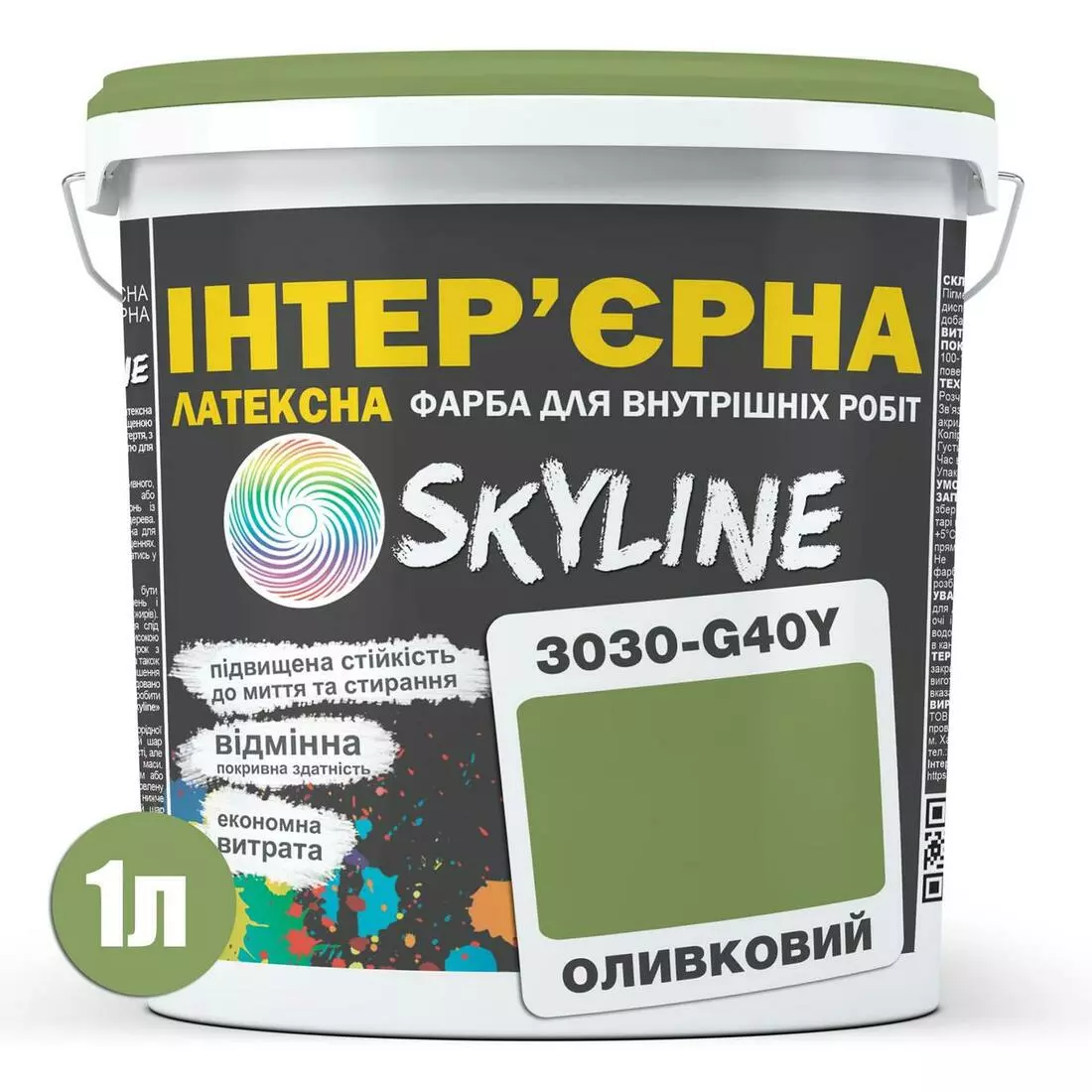 Краска Интерьерная Латексная Skyline 3030-G40Y Оливковый 1л
