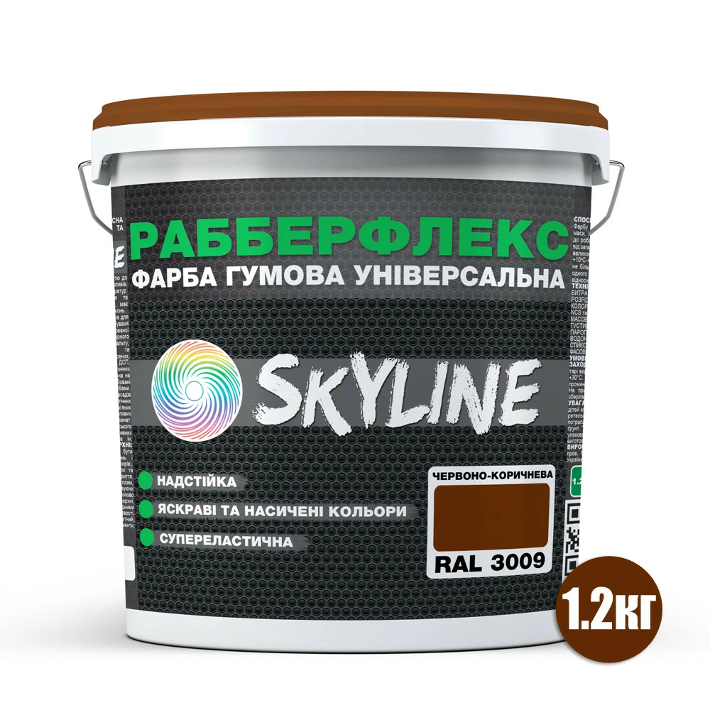 Краска резиновая суперэластичная сверхстойкая «РабберФлекс» SkyLine Красно-коричневая RAL 3009 1,2 кг