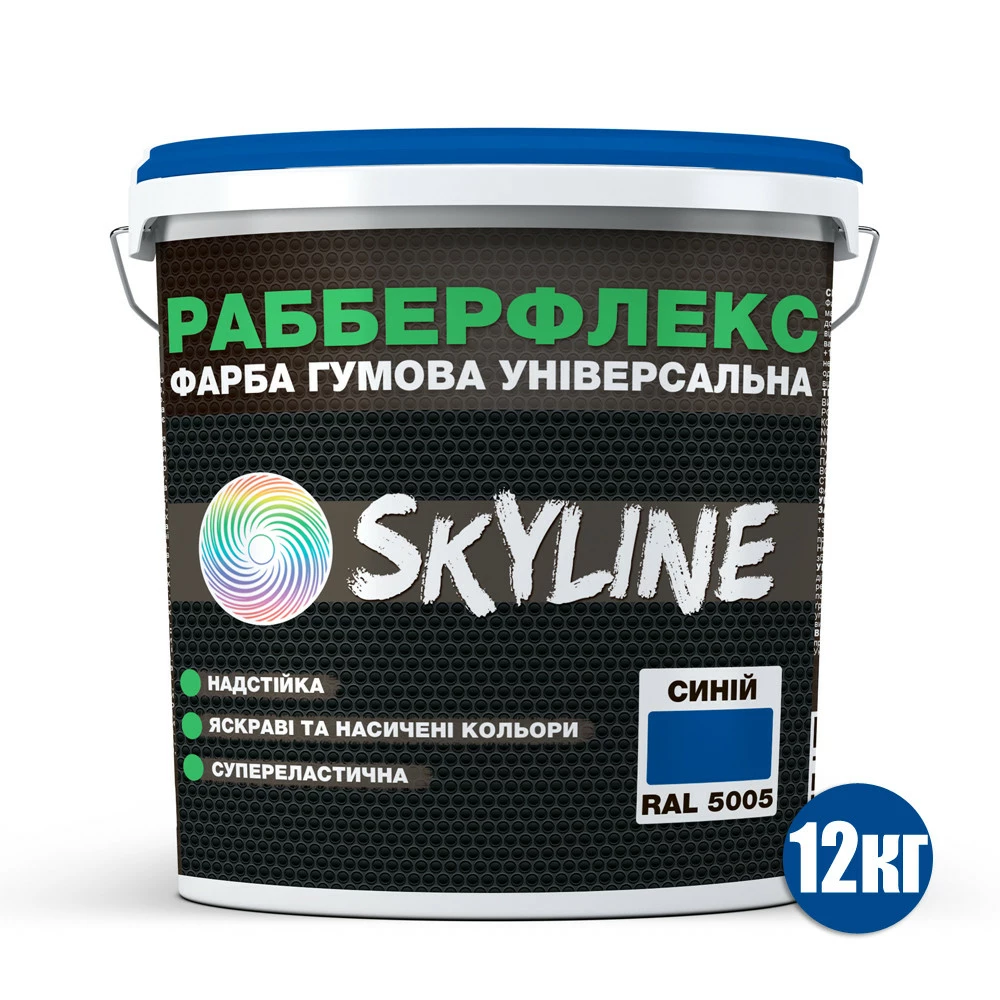 Краска резиновая суперэластичная сверхстойкая «РабберФлекс» SkyLine Синий RAL 5005 12 кг