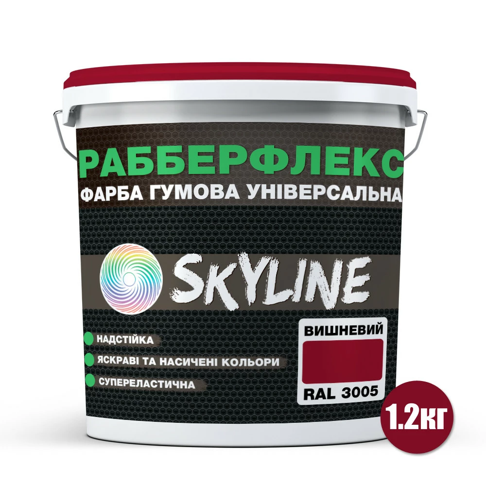 Краска резиновая суперэластичная сверхстойкая «РабберФлекс» SkyLine Вишневый RAL 3005 1,2 кг
