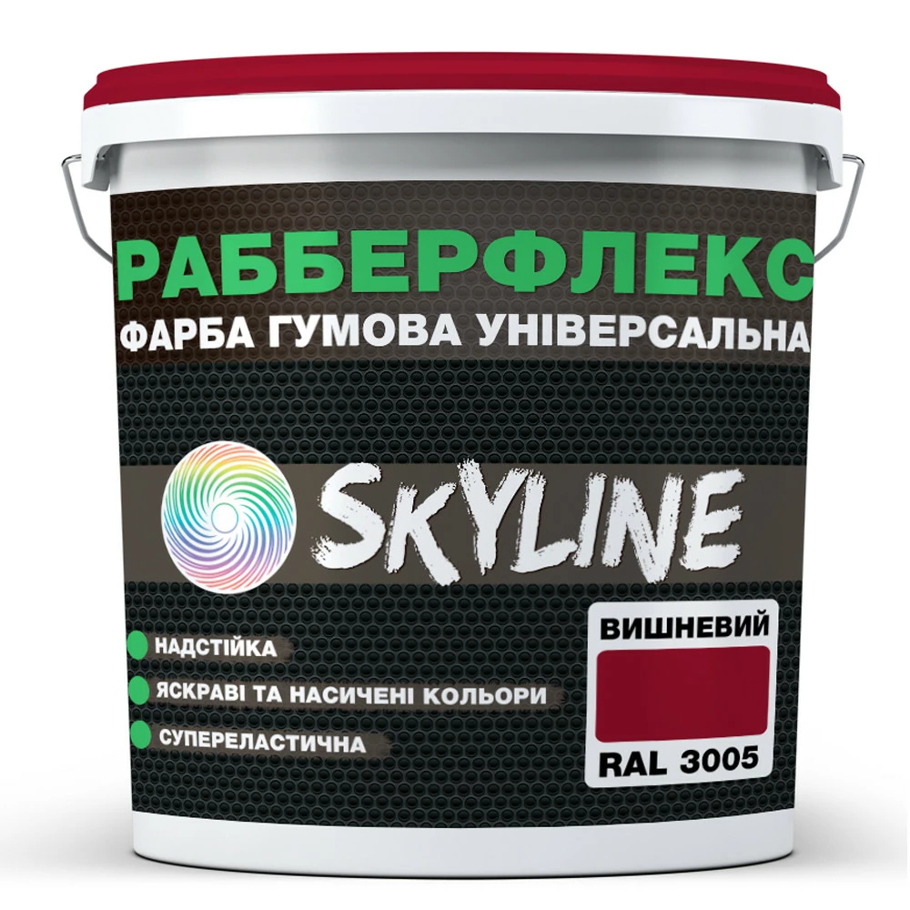 Краска резиновая суперэластичная сверхстойкая «РабберФлекс» SkyLine Вишневый RAL 3005 12 кг