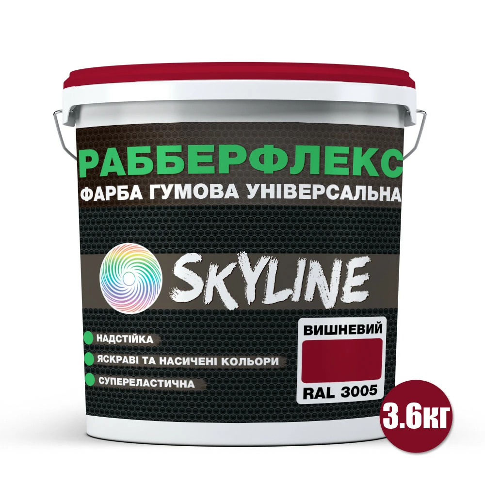 Краска резиновая суперэластичная сверхстойкая «РабберФлекс» SkyLine Вишневый RAL 3005 3,6 кг