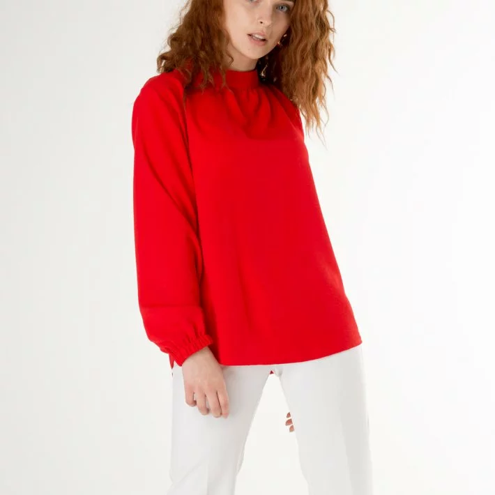 центру грудей, створюючи додатковий об'єм, довгий рукав на гумці,