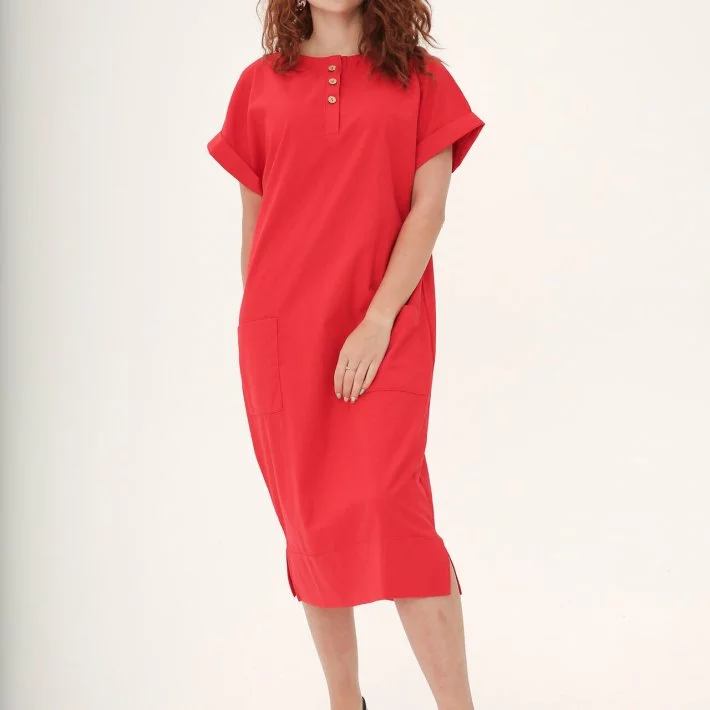 Лляна сукня прямого крою з відкритою горловиною, невелика застібка