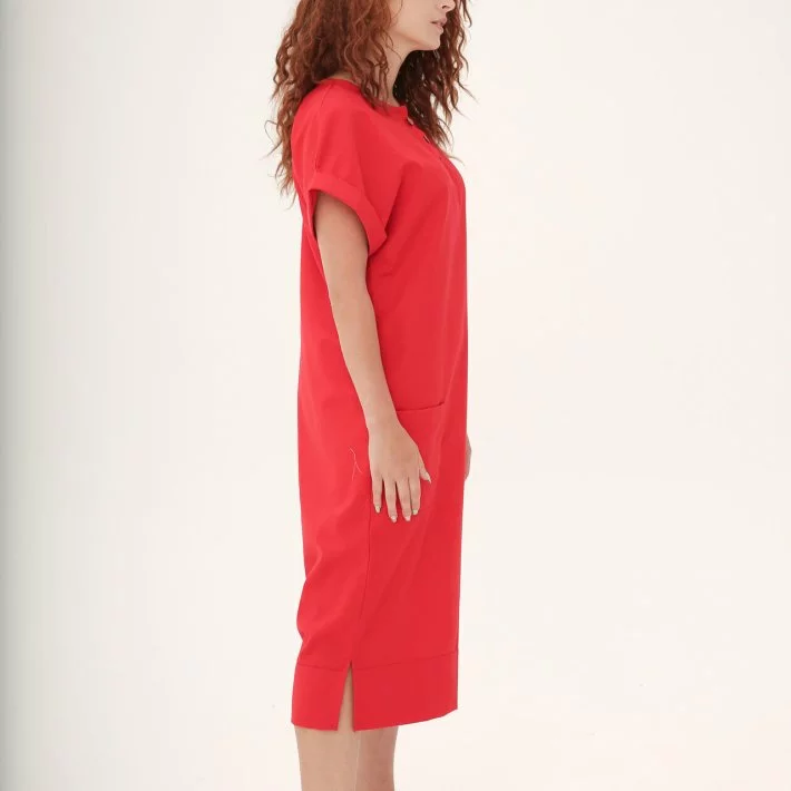 Лляна сукня прямого крою з відкритою горловиною, невелика застібка