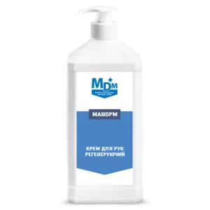 Крем для рук регенеруючий «Манорм» — це професійний засіб для догляду за шкірою, створений для щоденного використання у сферах із частим контактом рук із миючими та антисептичними засобами. Завдяки поєднанню зволожувальних, заспокійливих і відновлювальних компонентів крем інтенсивно пом’якшує, живить і захищає шкіру. Активні речовини, такі як бісаболол, пантенол, масла обліпихи та шипшини сприяють загоєнню мікропошкоджень, знімають подразнення та відновлюють природний гідробаланс. Засіб має нейтральний pH, добре вбирається, не залишає жирного блиску чи липкості, а його використання зменшує ризик розвитку професійних дерматологічних проблем.