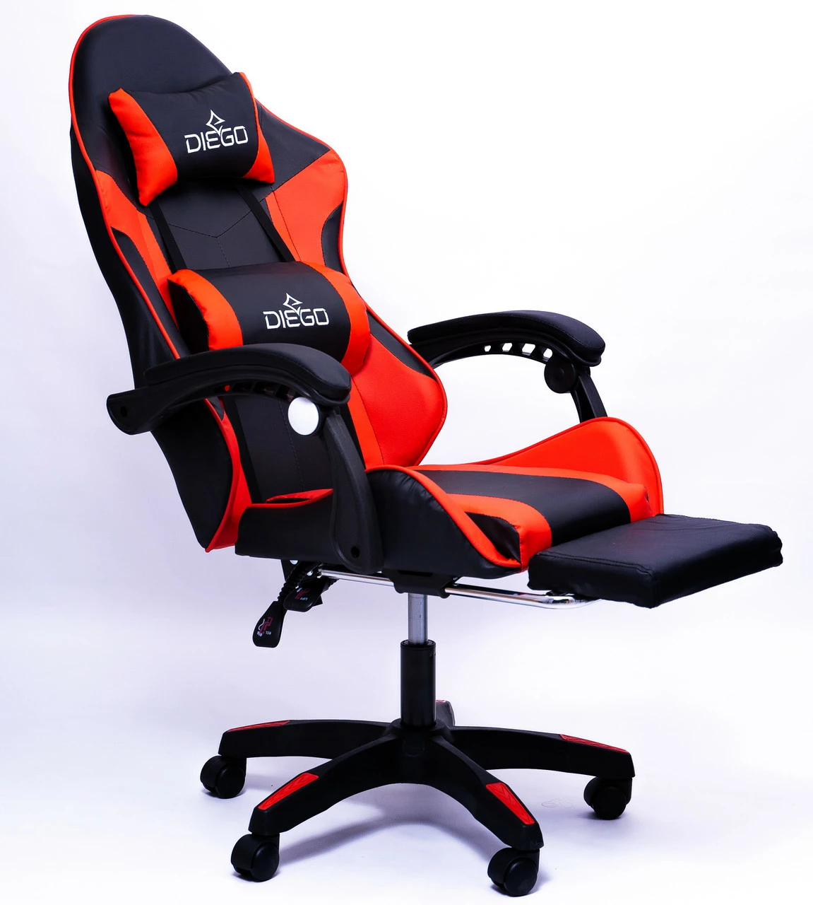 Кресло геймерское DIEGO с подставкою для ног и массажем черно-красное
