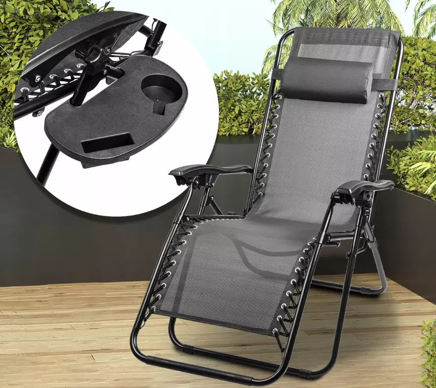 Благодаря подставке, входящей в комплект, вы всегда сможете иметь все необходимое под рукой — кофе, прохладительный напиток, воду, книгу или телефон — не вставая с шезлонга. Вы можете без страха сосредоточиться на блаженном отдыхе.