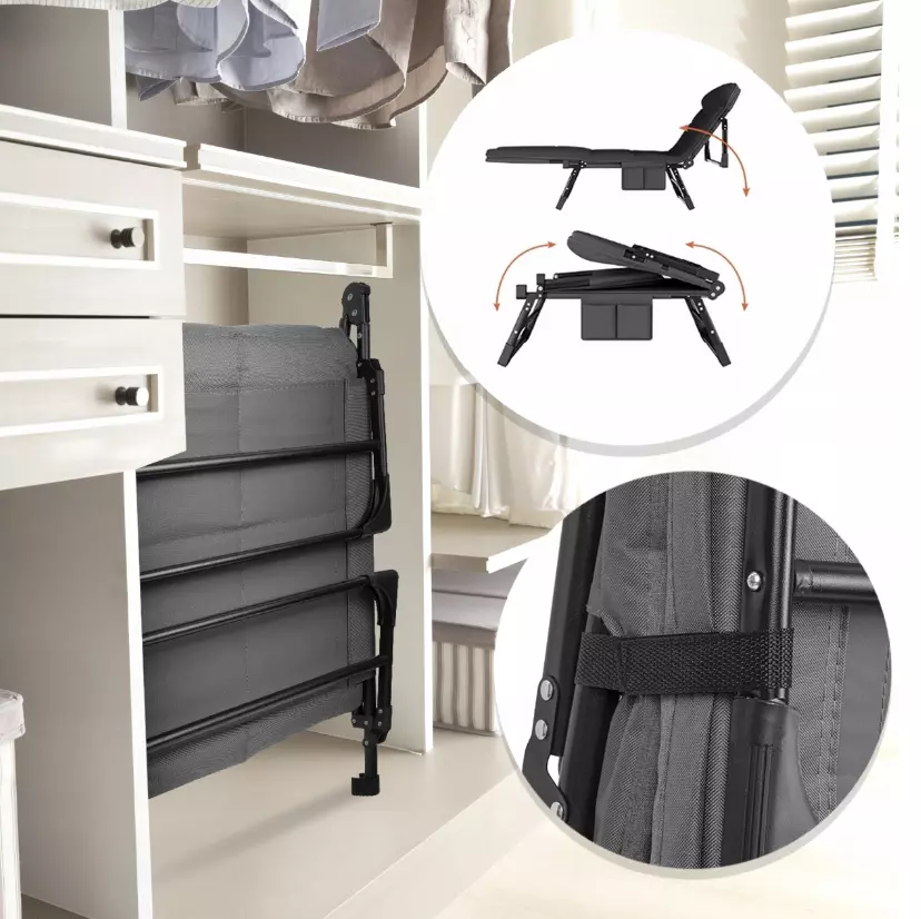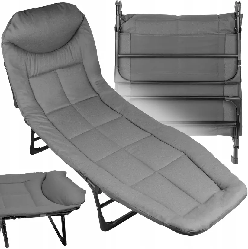 ◾ УСТОЙЧИВАЯ КОНСТРУКЦИЯ ◾ УСИЛЕННАЯ РАМА ◾ БОЛЬШОЙ РАЗМЕР ◾ БЫСТРОЕ И УДОБНОЕ СКЛАДЫВАНИЕ ◾ МЯГКИЙ МАТРАС И ПОДУШКА ◾ РЕГУЛИРУЕМАЯ СПИНКА ◾ ПРОСТОТА В ИСПОЛЬЗОВАНИИ