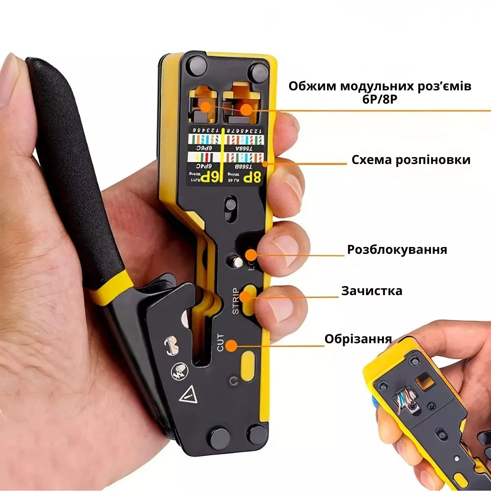 Кримпер для мережевих кабелів RJ45/RJ12 з функцією зачищення та