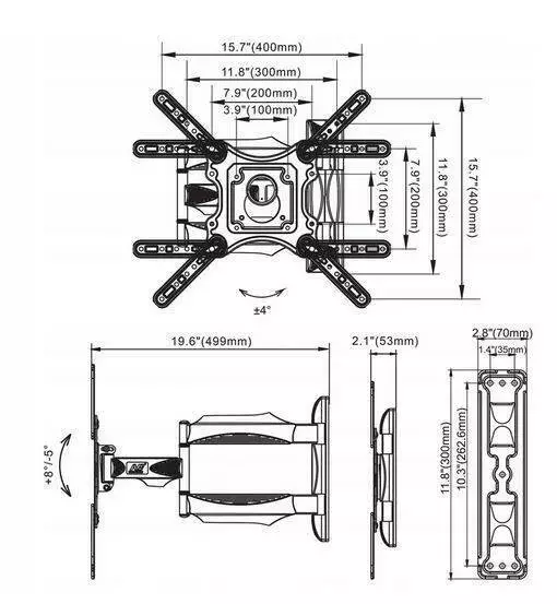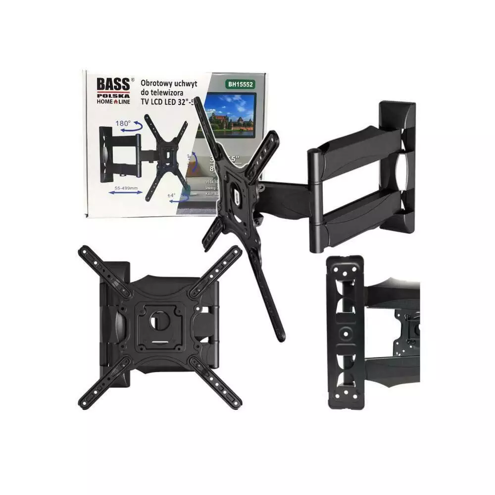 ПІДСТАВКА ДЛЯ ТБ 32–55 ДЮЙМІВ Розмір телевізора: 32 "- 55" Максимальна вага телевізора: 31,8 кг VESA макс.: 400x400 мм Регулювання обертання: 180 ° Регулювання нахилу: від +80 ° до -50 ° Регульована відстань від стіни: 53 ~ 499 мм Система керування кабелем ВКЛЮЧЕНО Регульований кронштейн для телевізора Комплект гвинтів* Інструкції з встановлення * У комплект входять стандартні/універсальні гвинти, що підходять для більшості телевізорів. Якщо вони не підходять, придбайте відповідні гвинти самостійно! ПЕРЕВАГИ ПІДСТАВКИ ДЛЯ ТБ BASS POLSKA Висока якість виготовлення із увагою до деталей. Регулювання нахилу. Поворотний важіль. На невеликій відстані від стіни. Корекція нахилу (вирівнювання помилок збирання). Тримач сертифікований ISO та TUV GS. Сумісний зі стандартом VESA. Система керування кабелем. Кришка, що закриває гвинти. Дуже солідний вигляд. Доступний у чорному кольорі. Сумісний зі стандартом VESA (відстань між монтажними отворами): VESA 100 (відстань між отворами 100 мм x 100 мм), VESA 200x100 (відстань між отворами 200 мм x 100 мм), VESA 200 (відстань між отворами 200 мм x 200 мм), VESA 200x300 (відстань між отворами 200 мм x 300 мм), VESA 200x400 (відстань між отворами 200 мм x 400 мм), VESA 300x200 (відстань між отворами 300 мм x 200 мм), VESA 300 (відстань між отворами 300 мм x 300 мм), VESA 400x200 (відстань між отворами 400 мм x 200 мм), VESA 400 (відстань між отворами 400 мм x 400 мм)