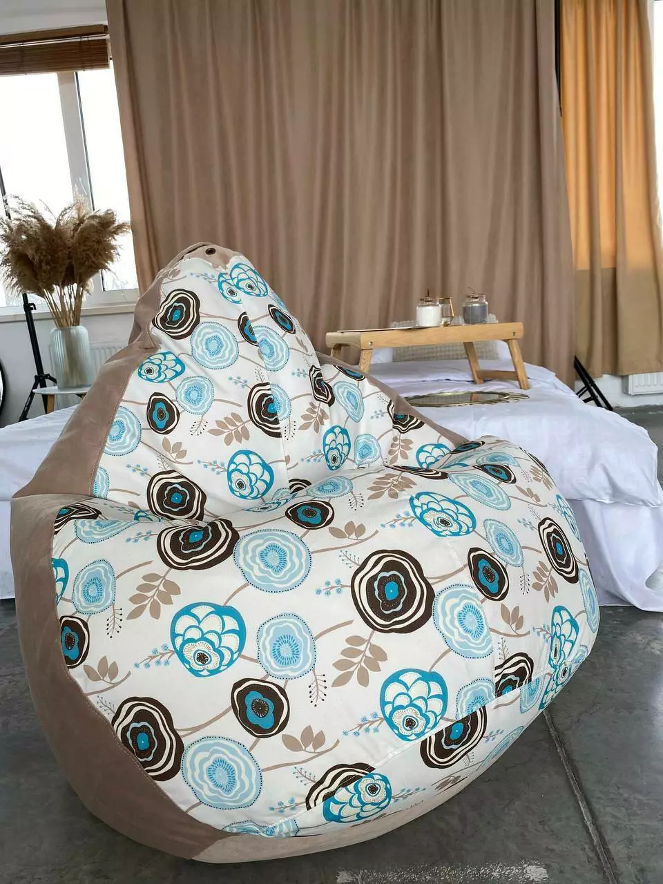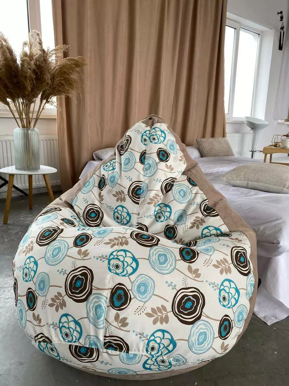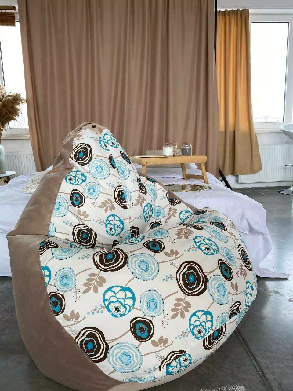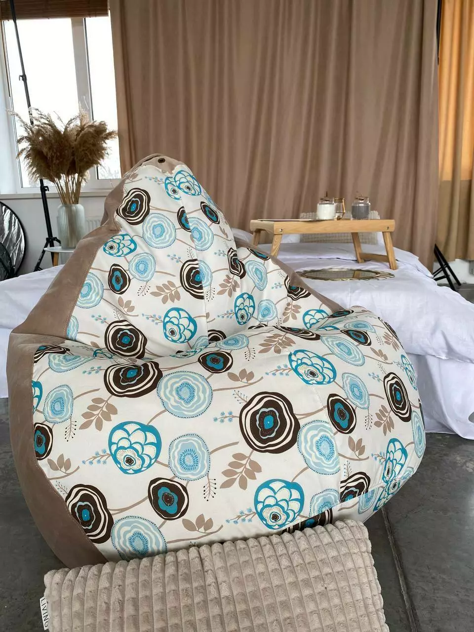 Пуф має ручку для зручного переносу та обов’язково люверси (отвори