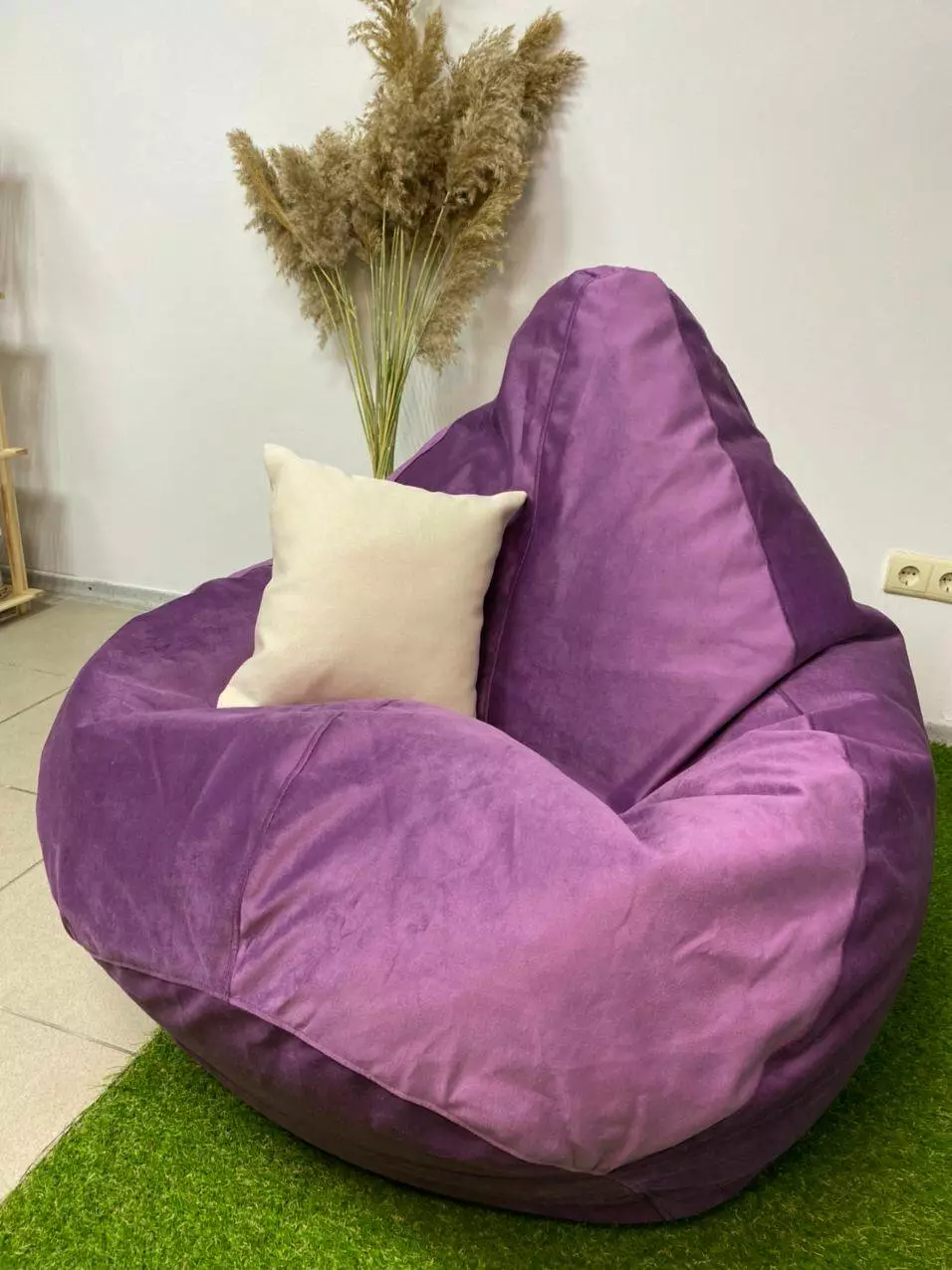 Пуф має ручку для зручного переносу та обов’язково люверси (отвори