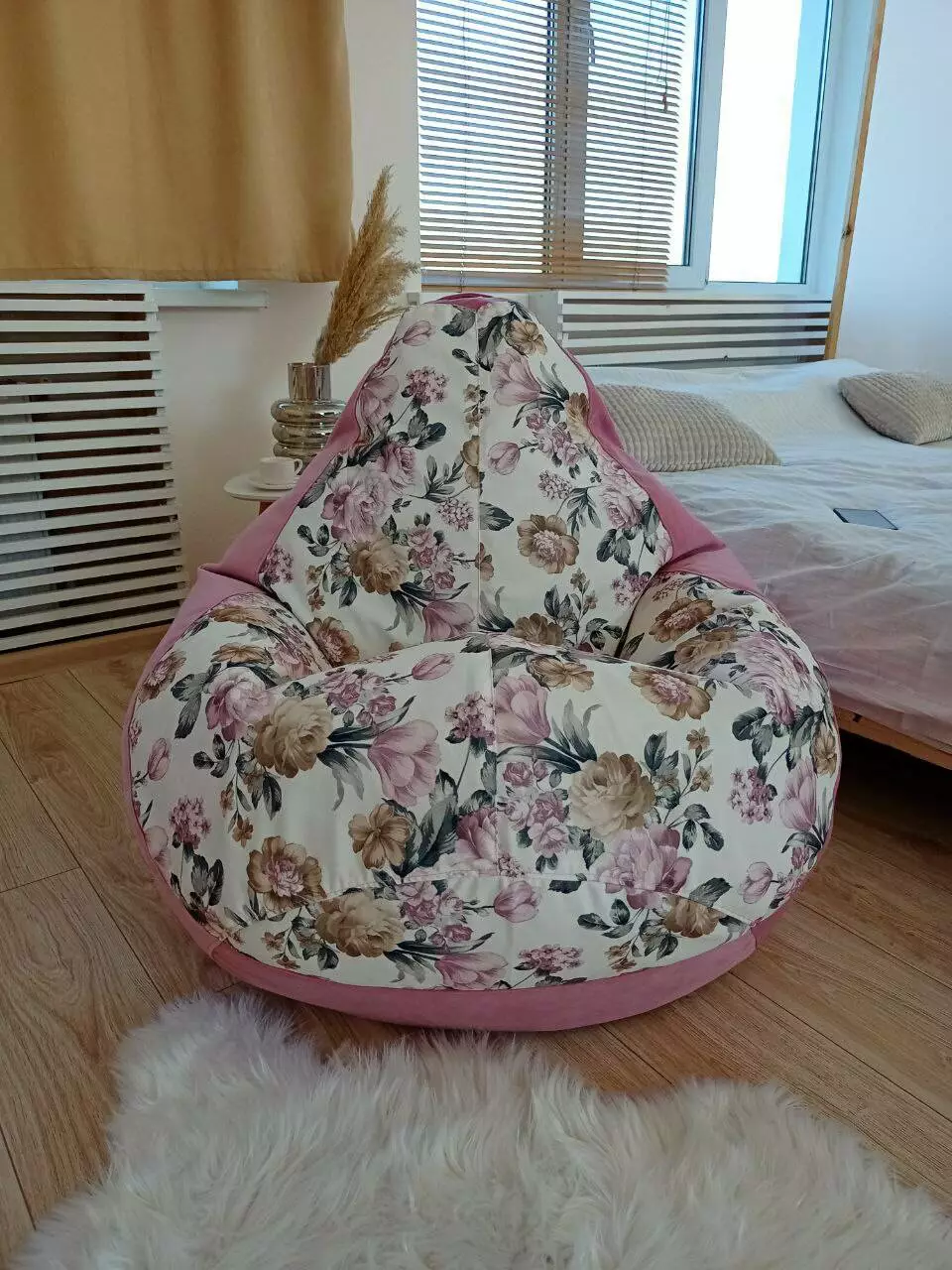 Пуф має ручку для зручного переносу та обов’язково люверси (отвори