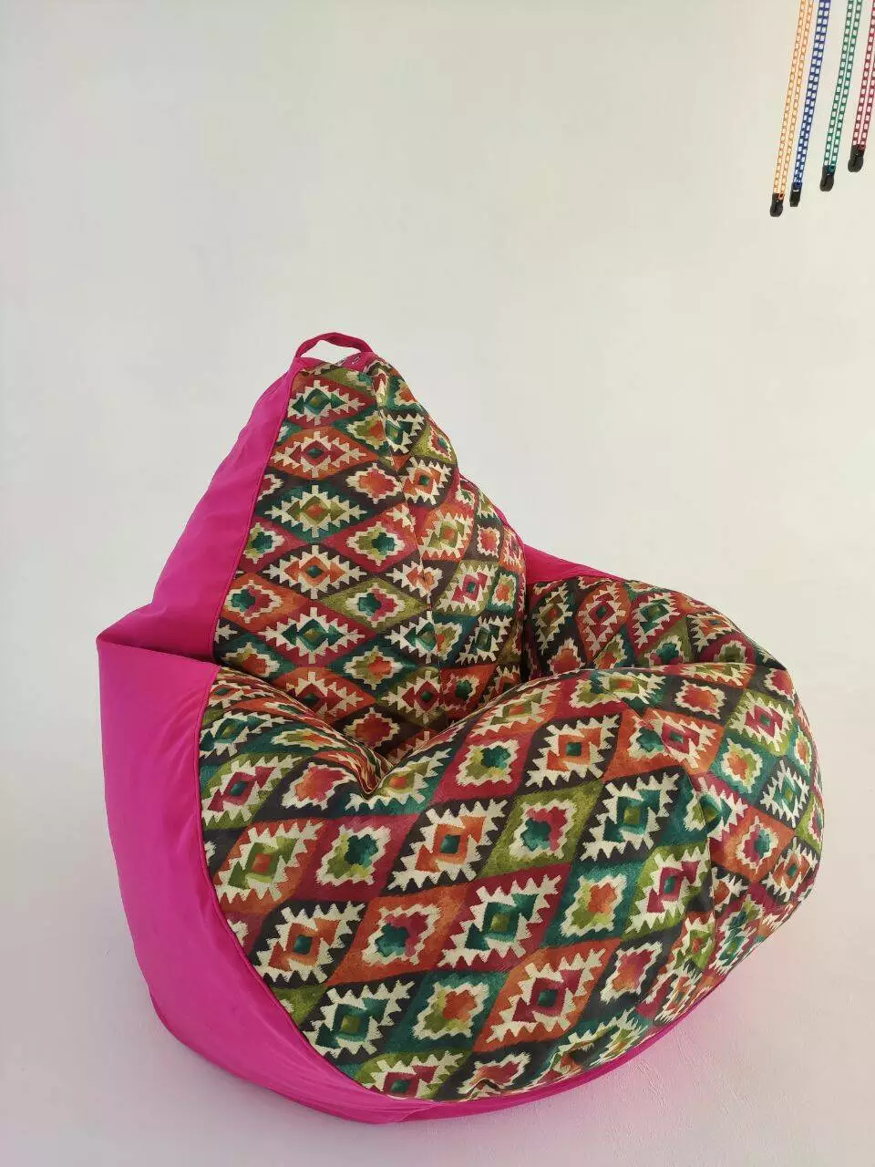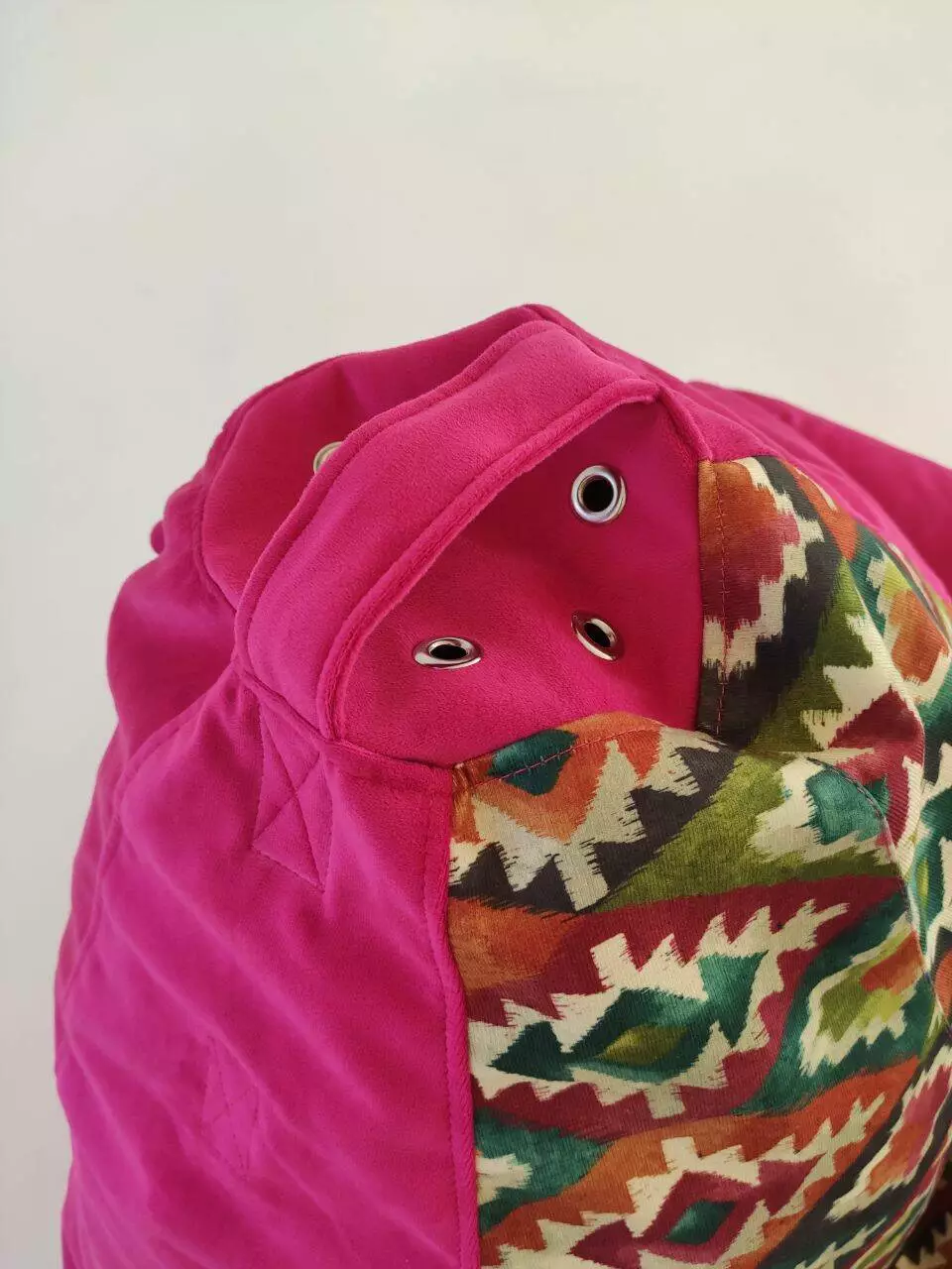Пуф має ручку для зручного переносу та обов’язково люверси (отвори