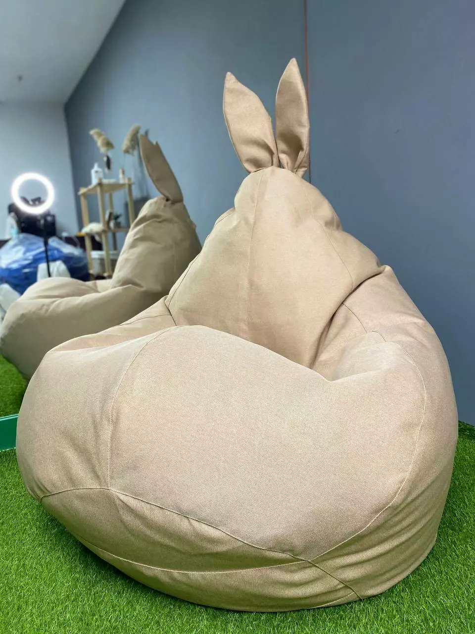 Пуф має ручку для зручного переносу та обов’язково люверси (отвори
