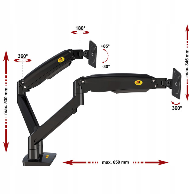 Кронштейн настільний для двох моніторів 22' - 32' NB F195A - 2 варіанти кріплення до столу