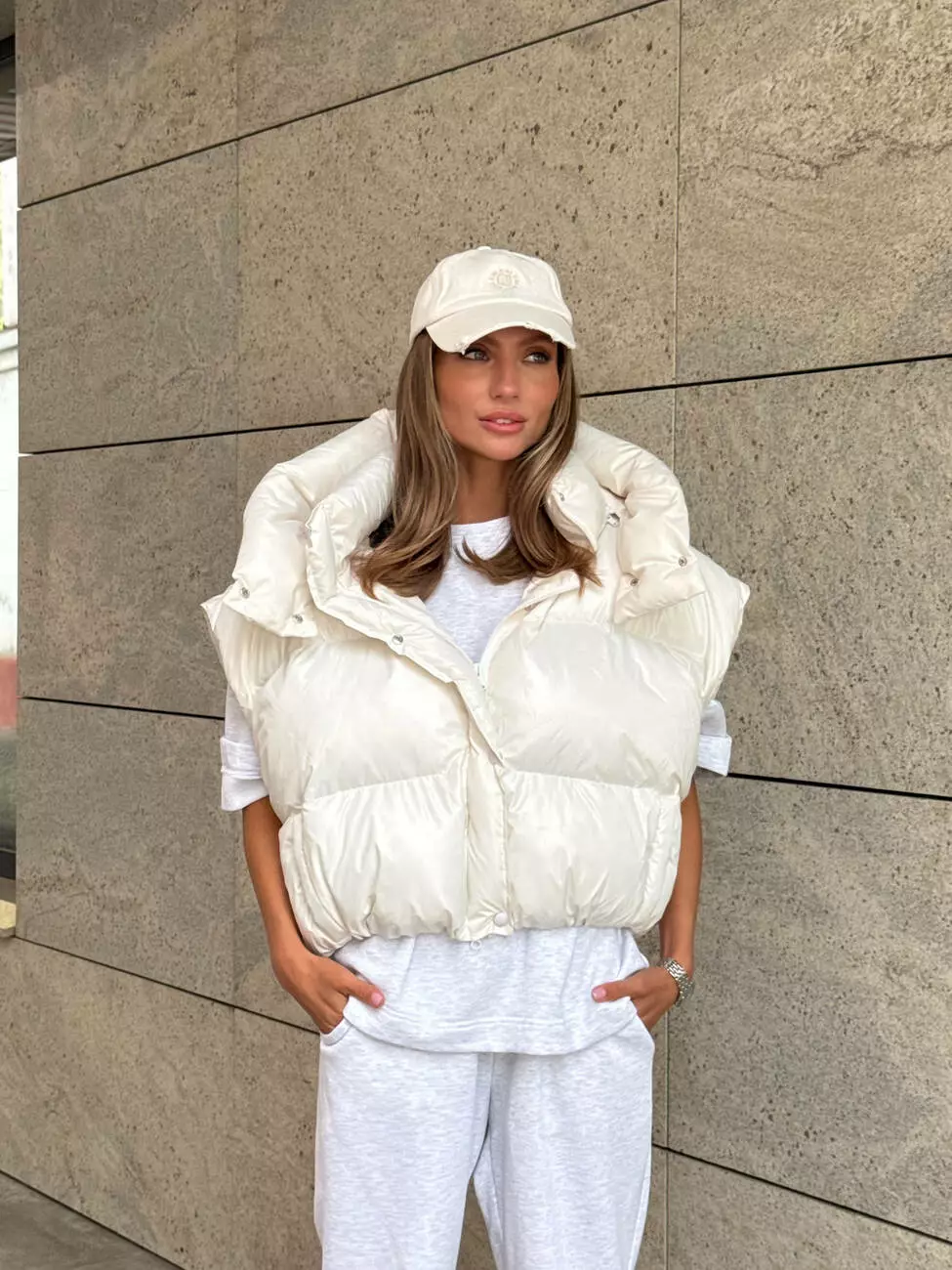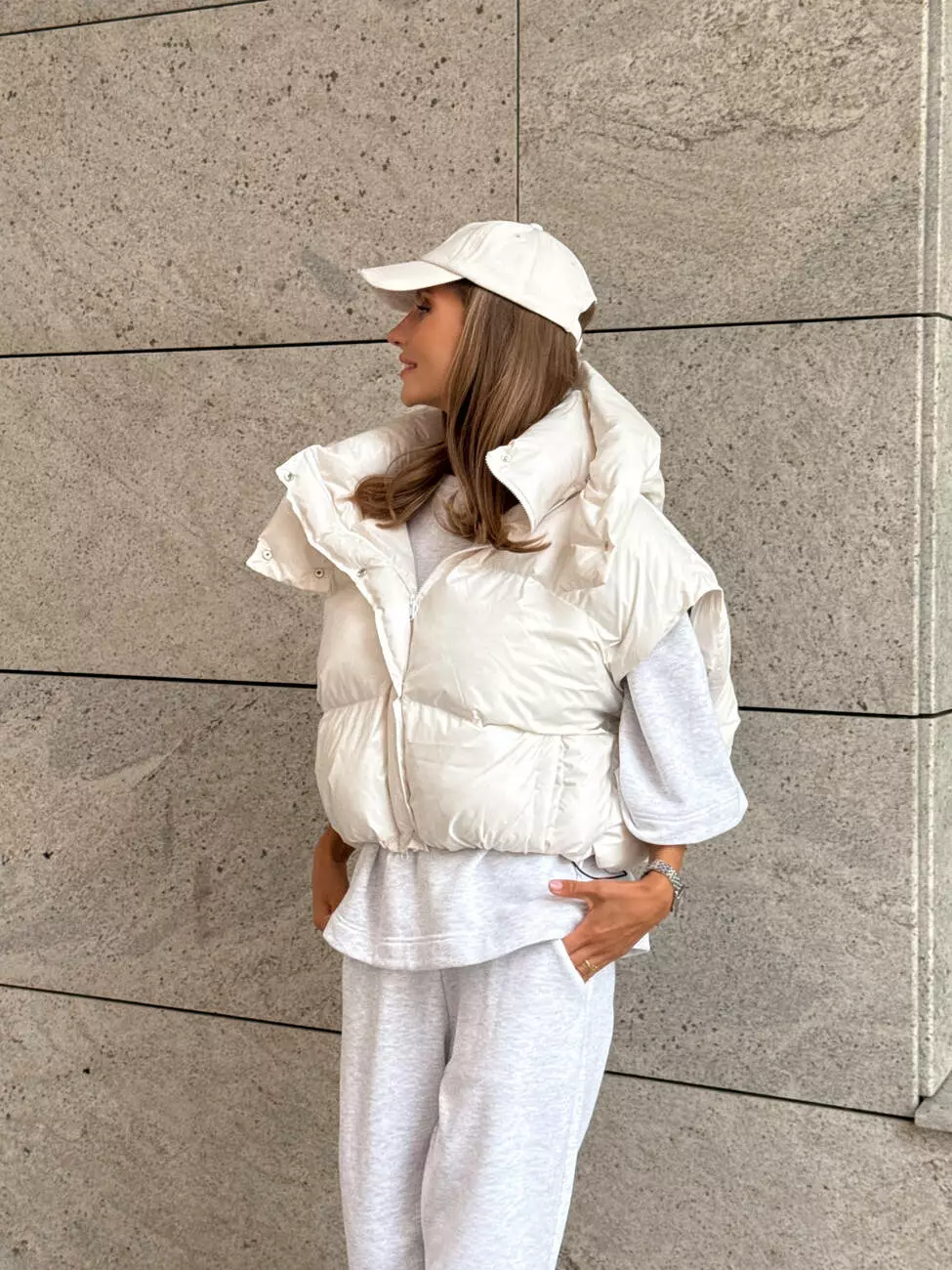 Стильний укорочений пуховик з непродувної та водонепроникної тканини легко перетворюється на теплий жилет — просто зніми рукава. А знімний капюшон допоможе підлаштуватися під будь-яку погоду. Легкий, теплий і надзвичайно зручний — твій must-have цієї зими.