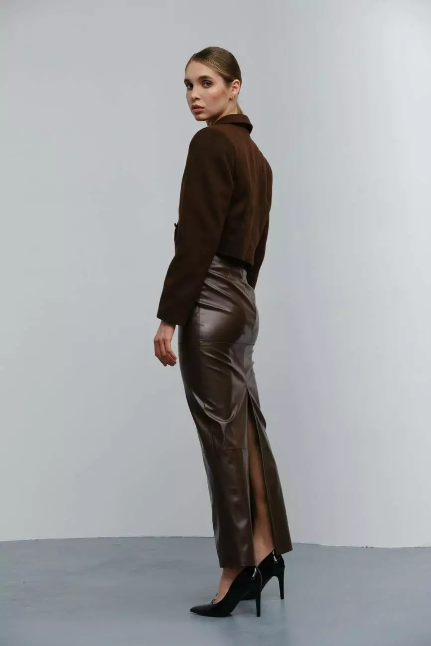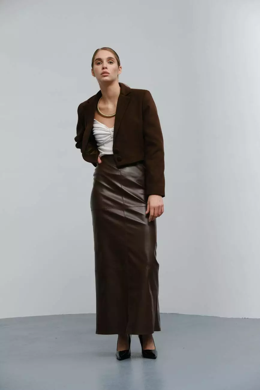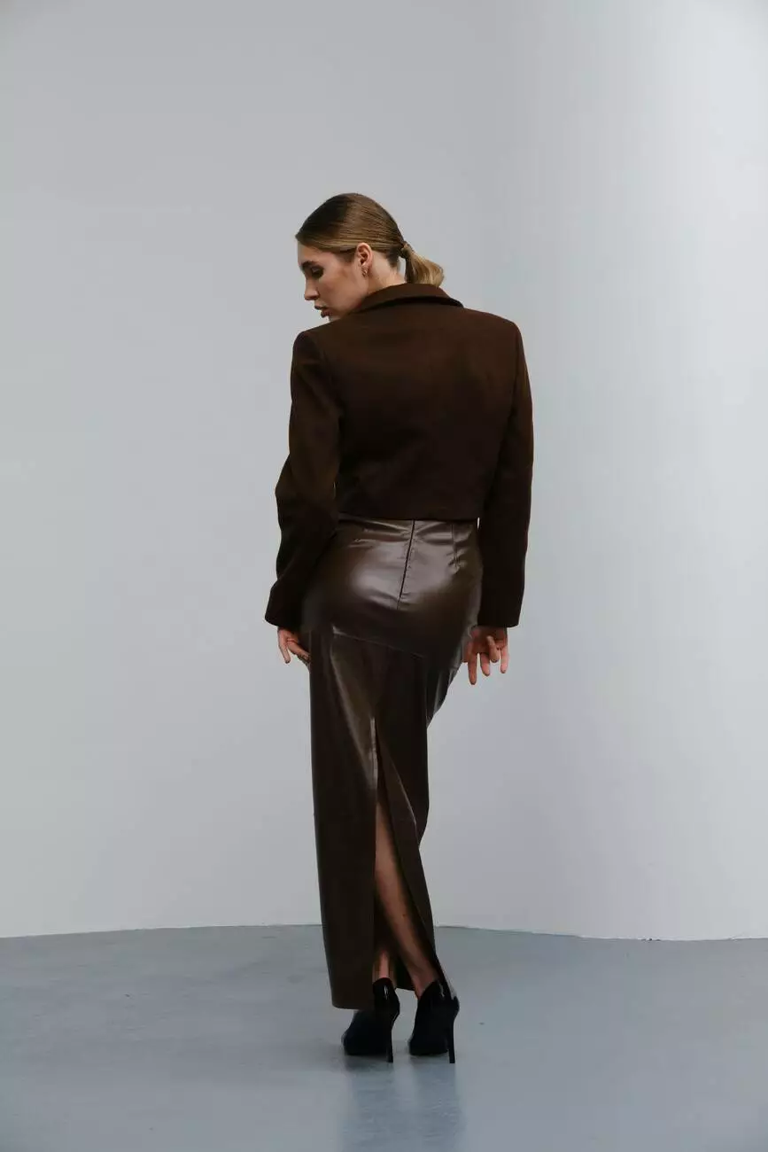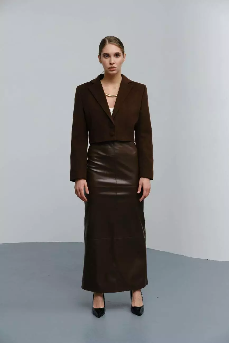 Елегантний кроп-жакет у шоколадному кольорі - ідеальний вибір