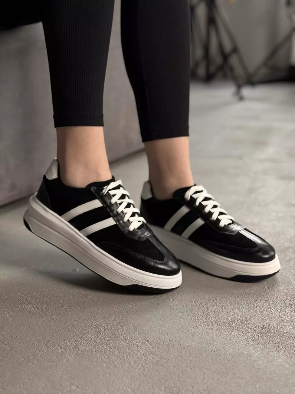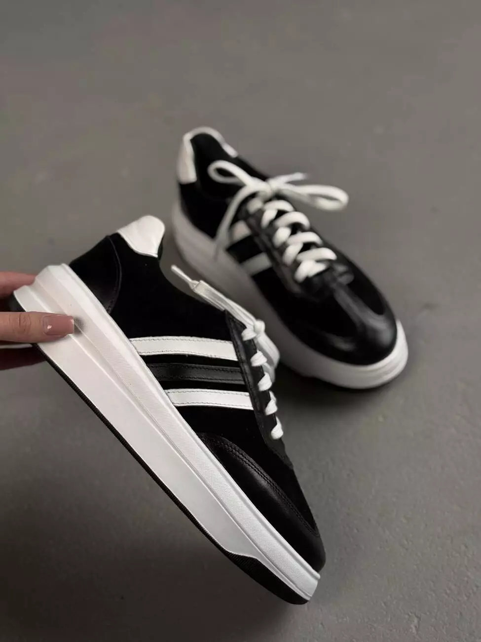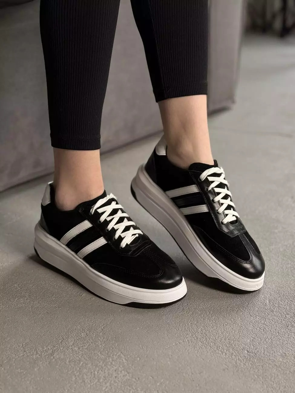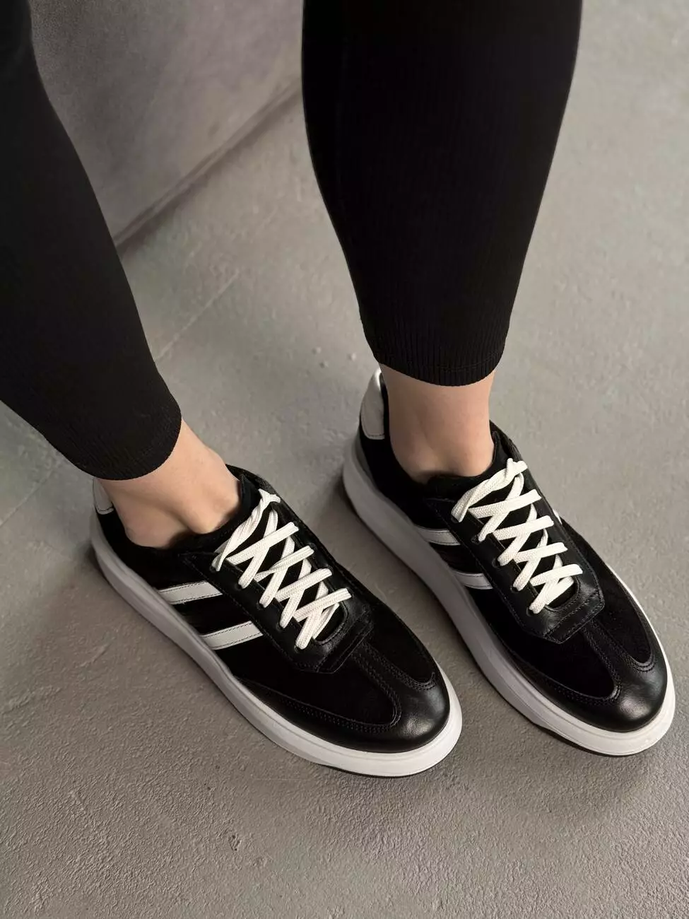 Чорні кросівки в стилі casual з контрастними білими деталями — саме те, що зробить твій образ стильним і зручним водночас