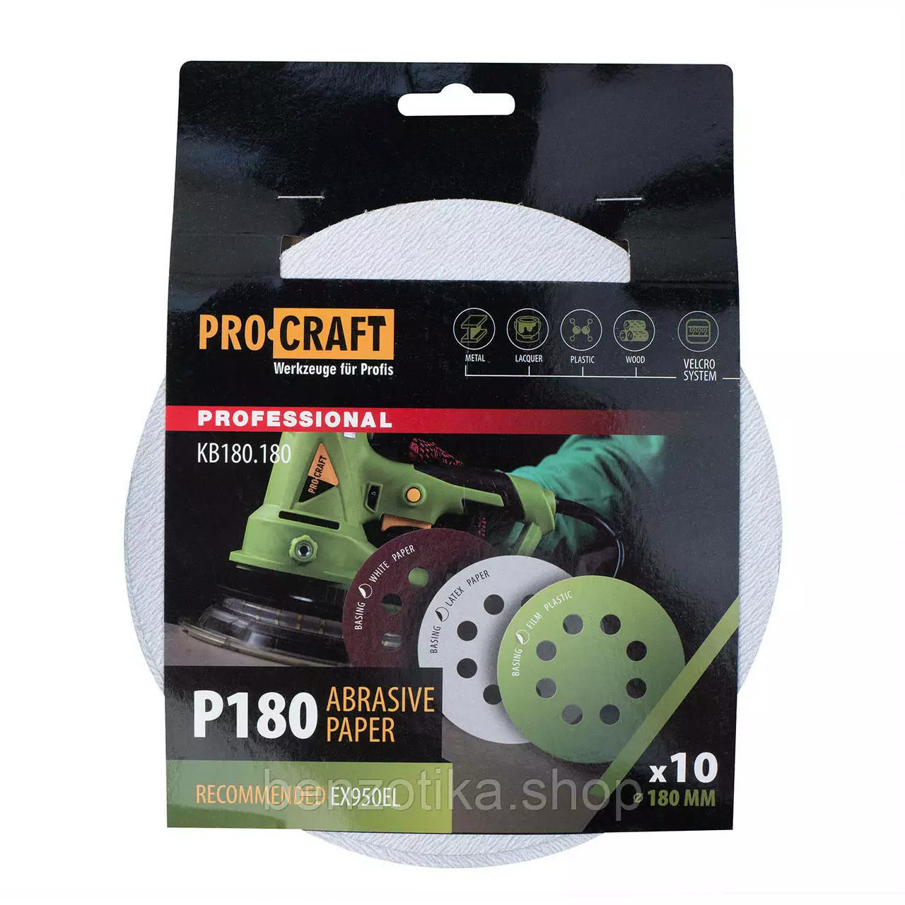 Круг шлифовальный самозацепной Procraft KB180.180 UNIVERSAL (набор 10 шт.) 8 отв.