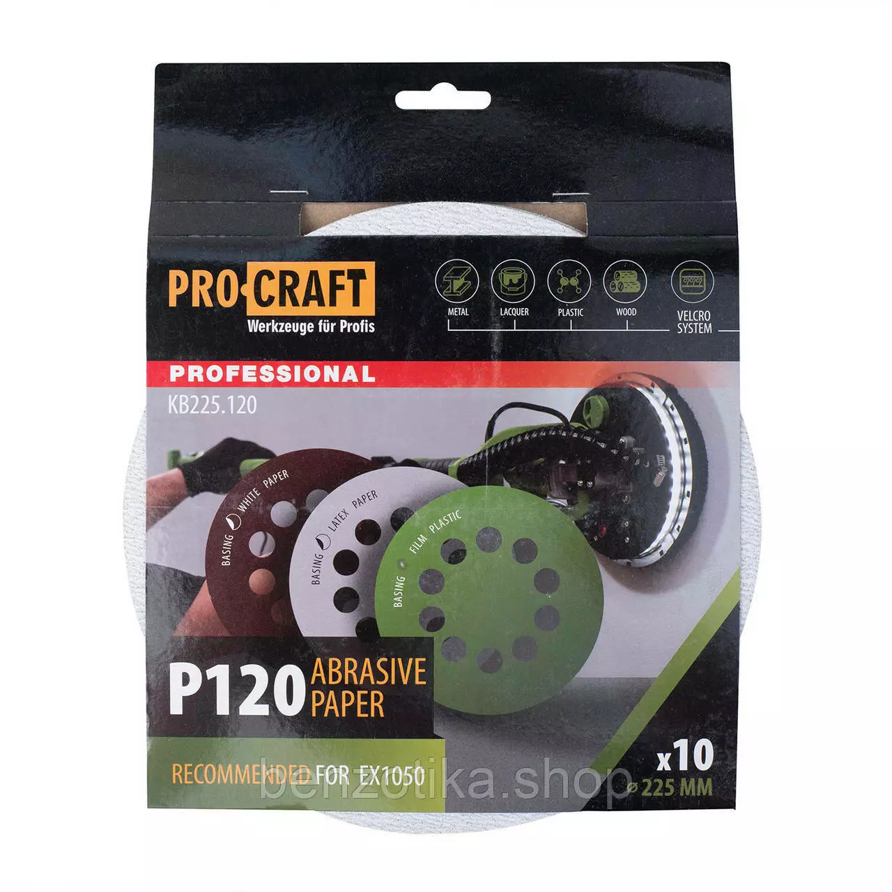 Круг шлифовальный самозацепной Procraft KB225.120 UNIVERSAL (набор 10 шт.) 10 отв.