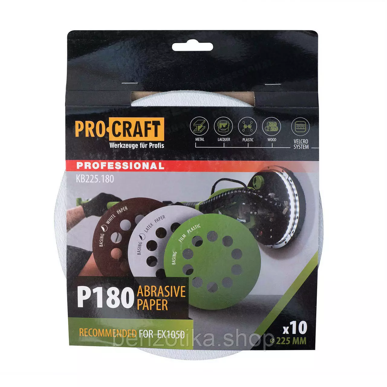 Круг шлифовальный самозацепной Procraft KB225.180 UNIVERSAL (набор 10 шт.) 10 отв.