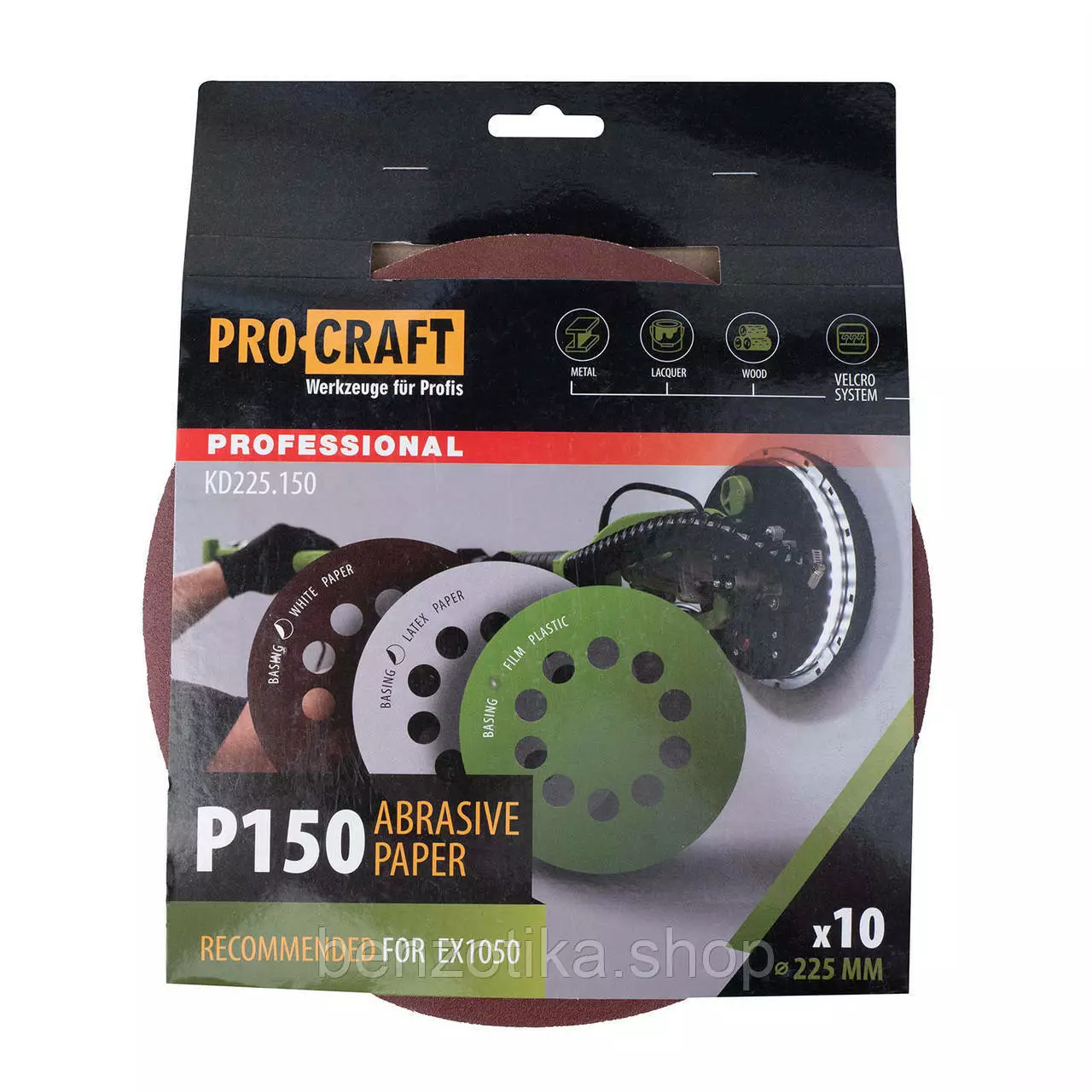 Круг шлифовальный самозацепной Procraft KD225.150 UNIVERSAL (набор 10 шт.) 10 отв.