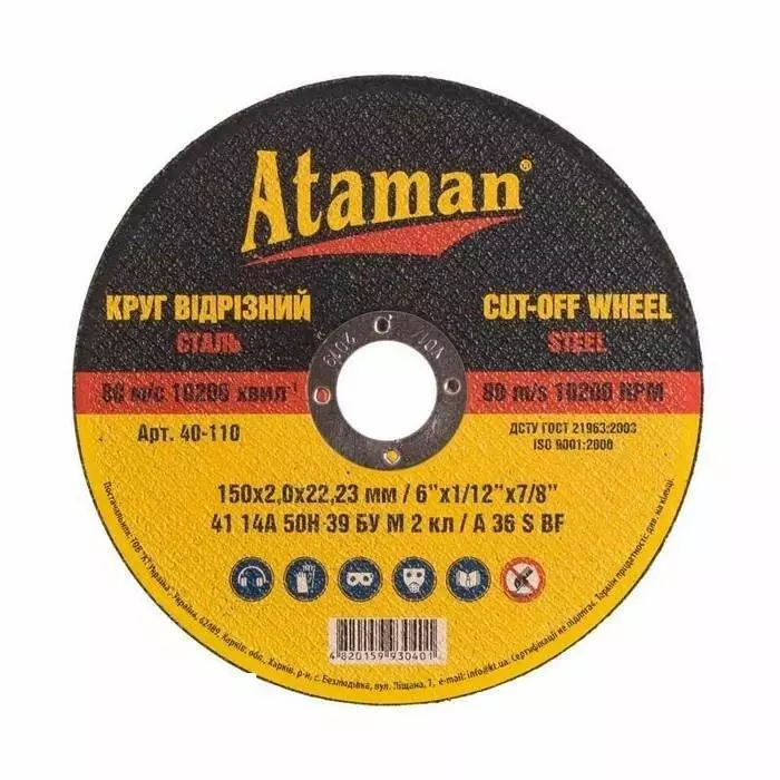 Круг відрізний ATAMAN застосовується на ручних УШМ у різанні