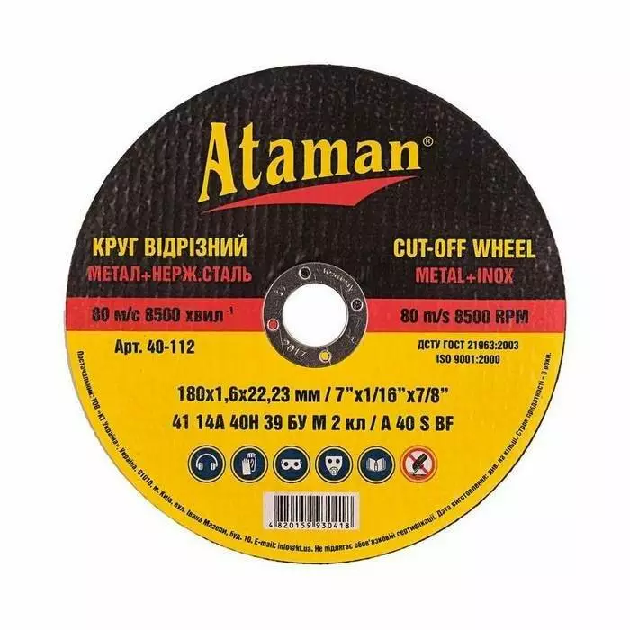 Круг відрізний ATAMAN застосовується на ручних УШМ у різанні