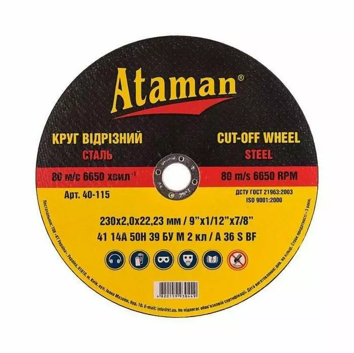 Круг відрізний ATAMAN застосовується на ручних УШМ у різанні