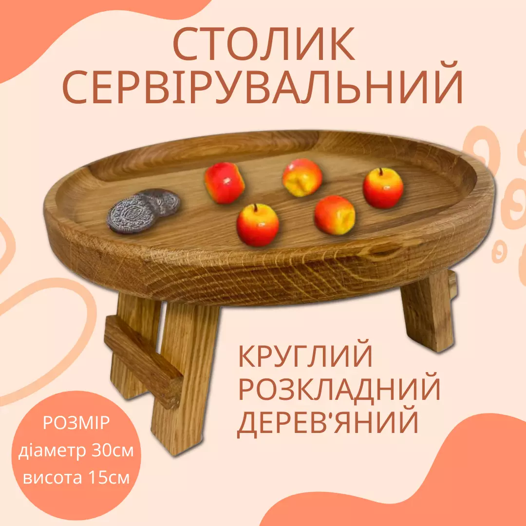 Складной круглый столик-поднос из натурального дуба - это стильное