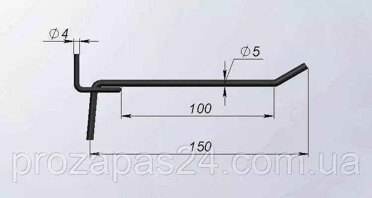 Крючок 150мм черный одинарный на перфорацию сетку торговый