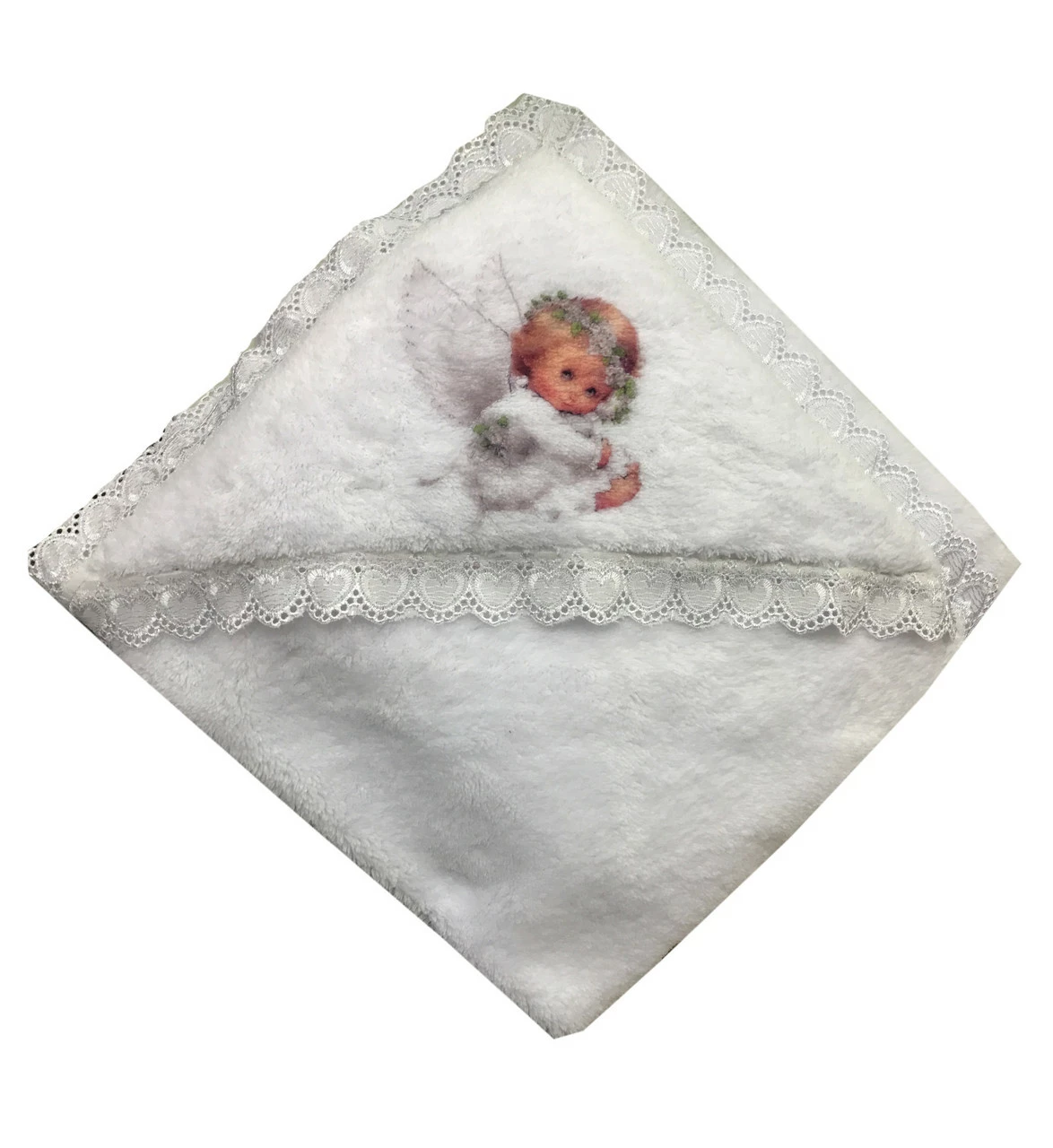 Эта модель украшена кружевом и рисунком ангелочка на уголке.