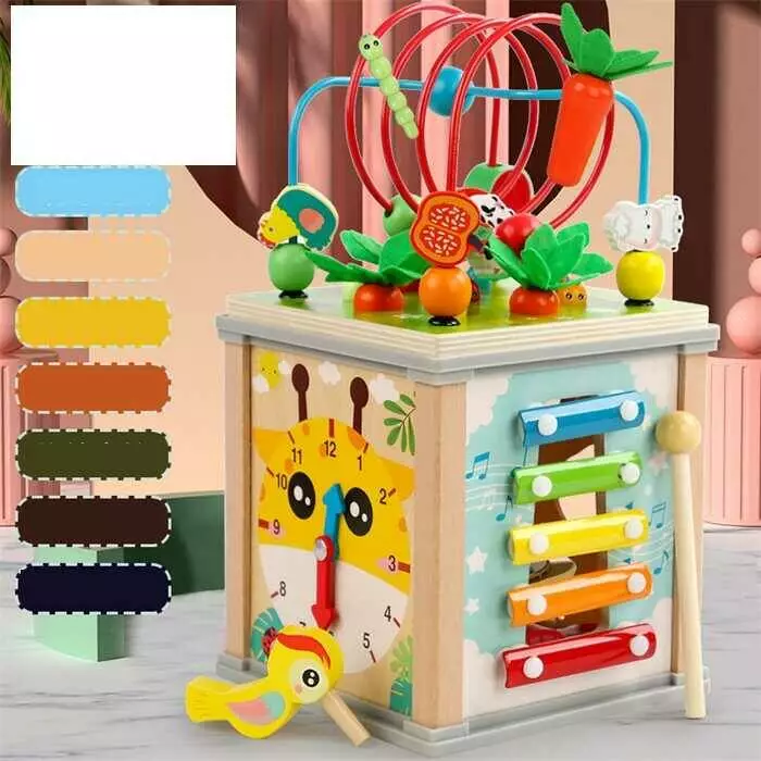 Куб логічний C 74169 (18) дерев`яний, 7 в 1, ксилофон, годинник, магнітна гра, морквинки, лабіринт, шестерні, сортер, у коробці