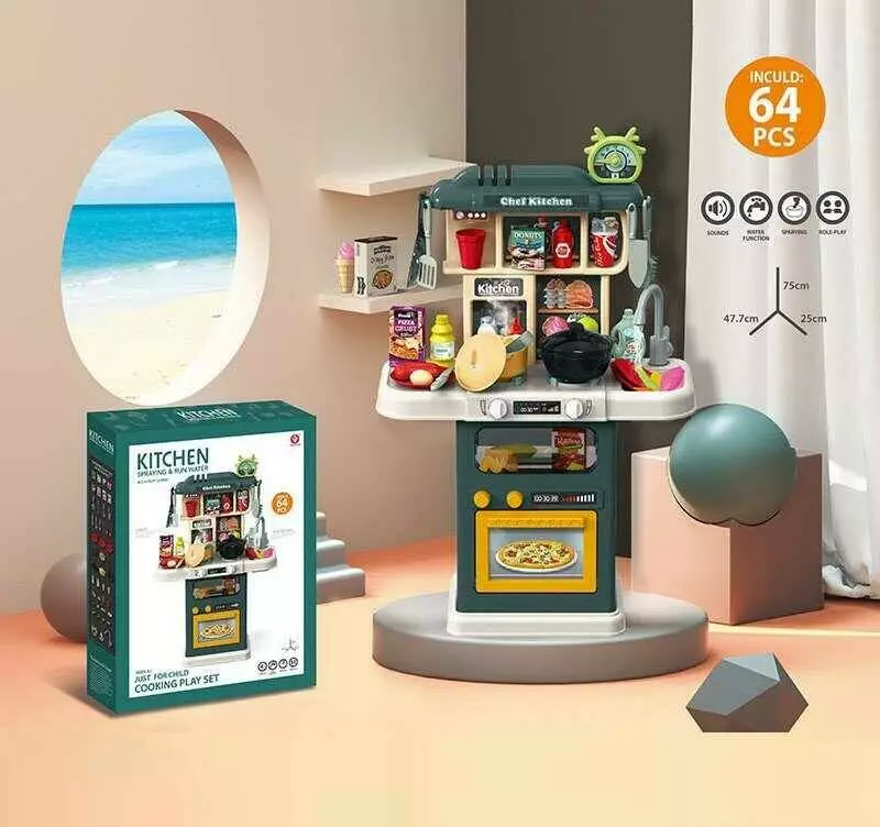 Кухня 922-122 (12) висота 75 см, підсвічування, парогенерація, звук, автоматична подача води, 64 елементи, посуд та їжа, в коробці