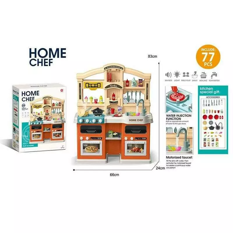 Кухня 922-160 (4) висота 83 см, 77 елементів, підсвічування, звук приготування, мелодії, витяжка, вібрація, пара, автоматична подача води, в коробці