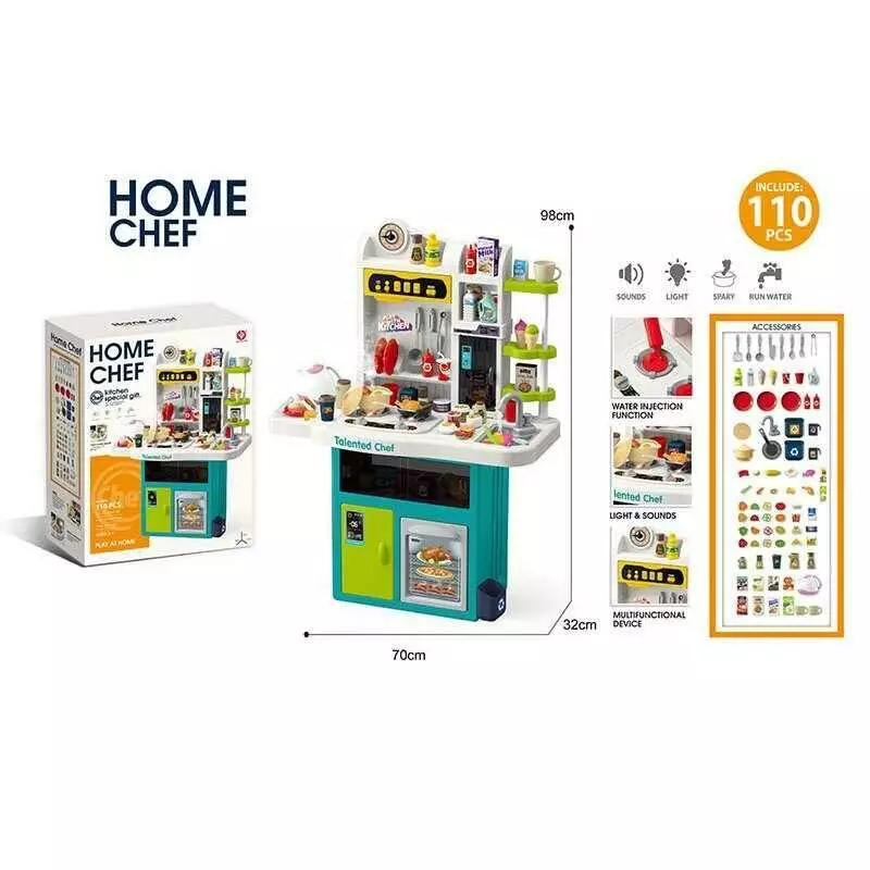 Кухня 922-172 (4) висота 98 см, 110 елементів, парогенерація, підсвічування, звуки, мелодії, витяжка, помпова подача води, продукти, в коробці